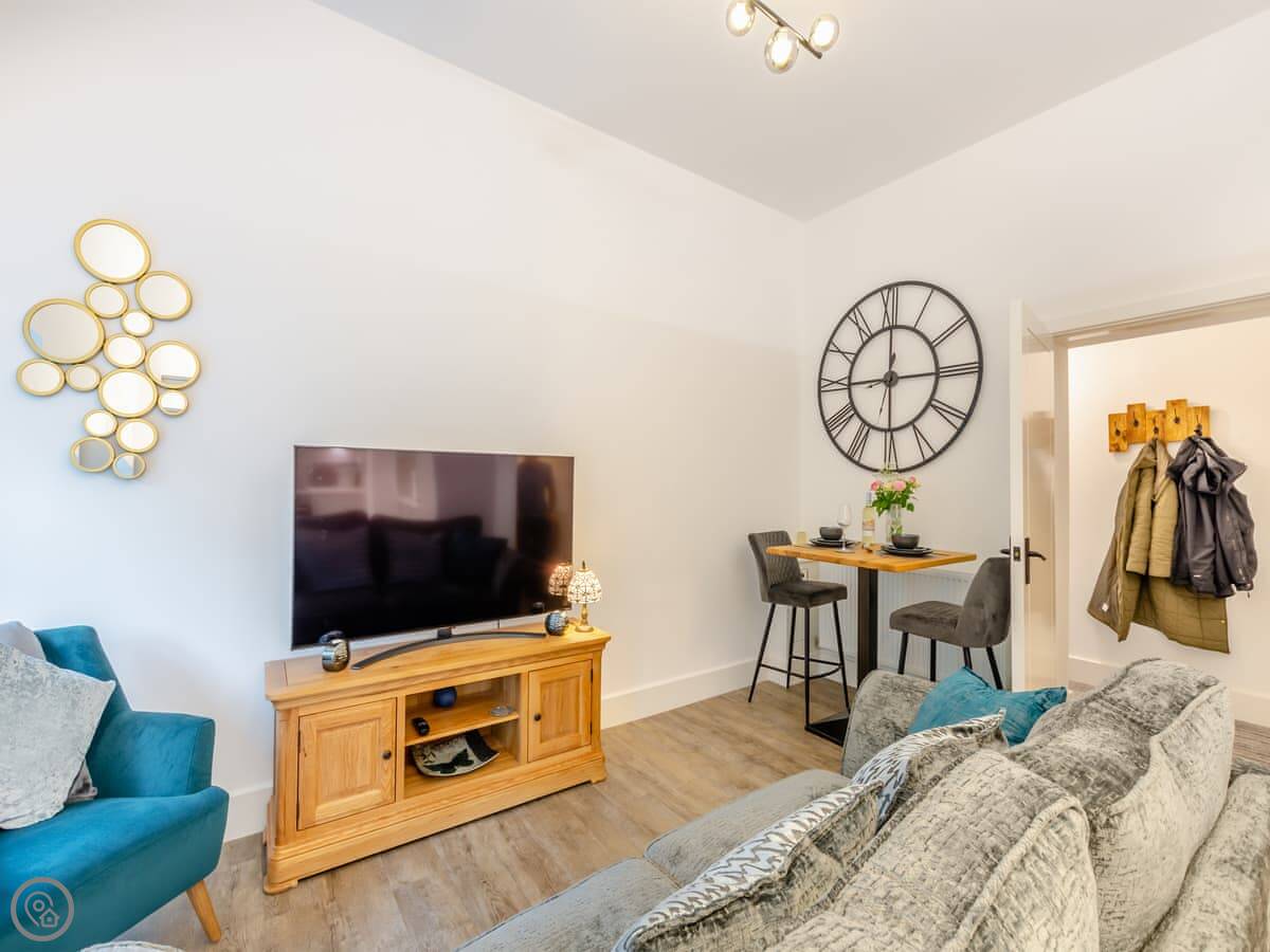Weaver's Snug is a converted weaver's cottage on the edge of Haworth. It's an apartment, but you get the whole building to yourselves. It's right by the river, so you can hear the water from the windows.