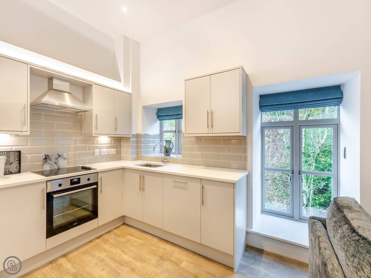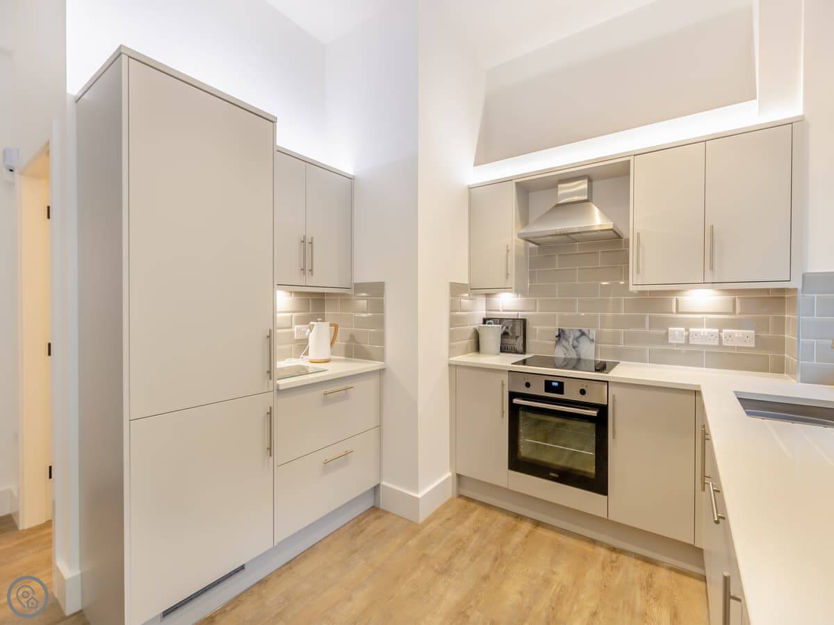 It's a 4 Star place, so the finishes are good. Quartz worktops, that sort of thing. There's a washing machine and dishwasher. All bedding and towels are provided. You can bring one dog.