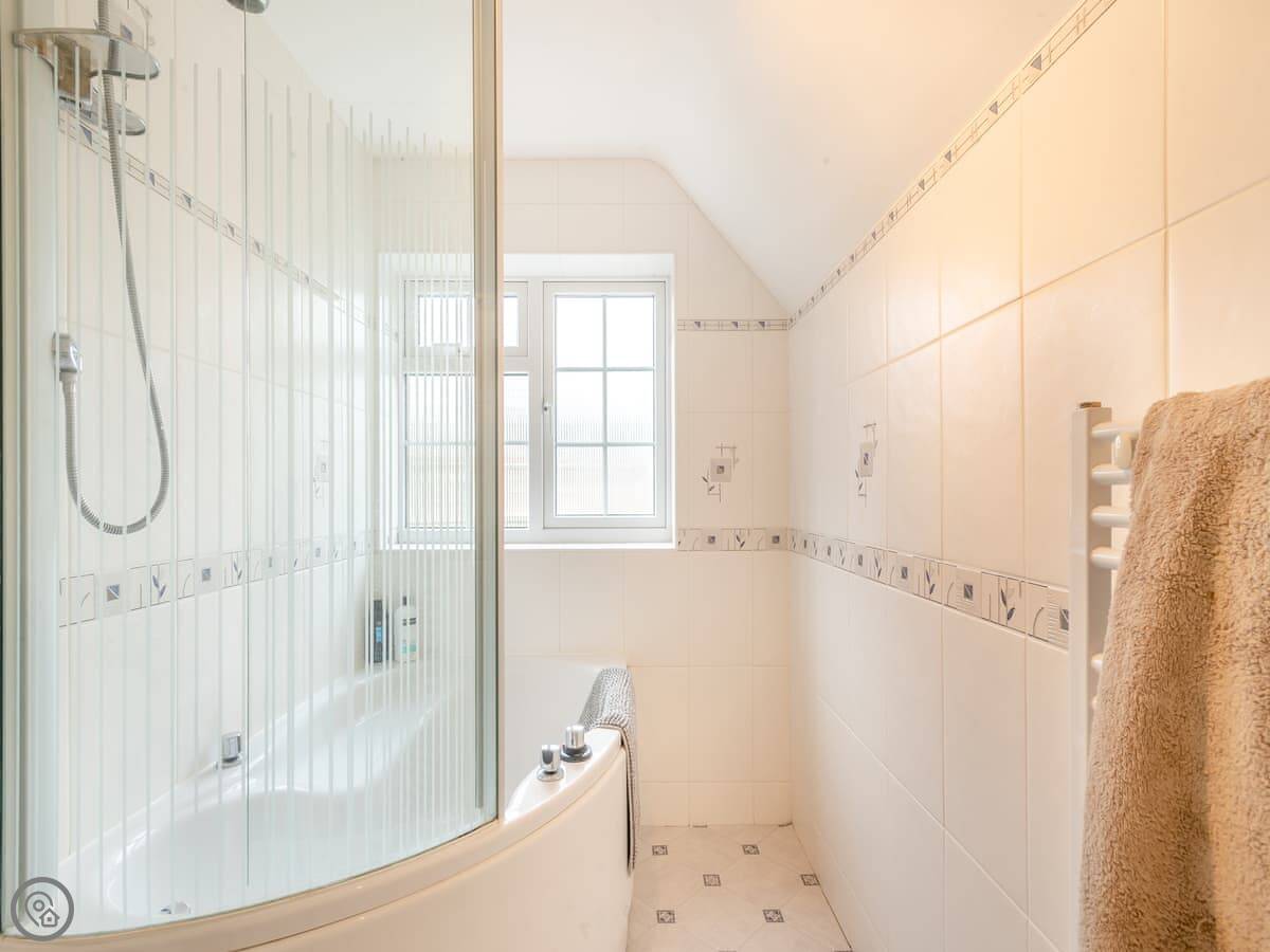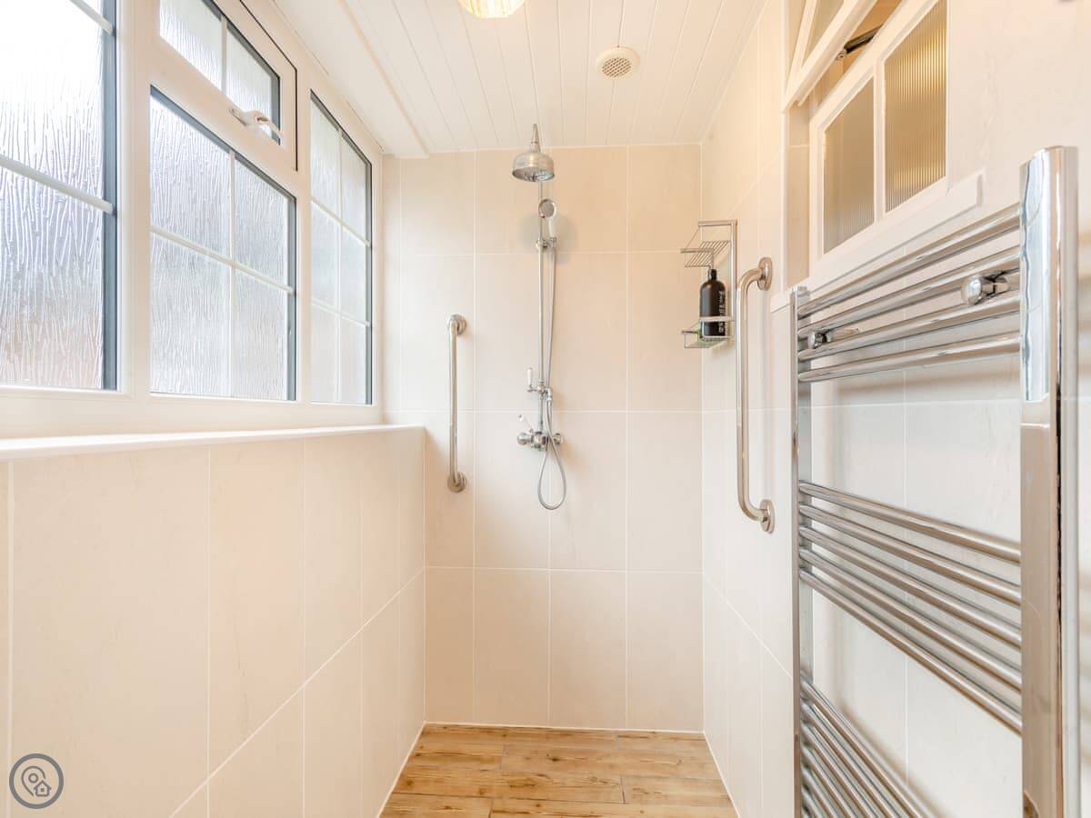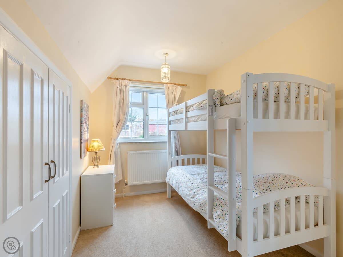 It’s a 5 Star property, which means it’s well equipped and finished to a high standard. It’s big and functional for a family or a group. Two bedrooms are on the ground floor, one with an en suite. There’s also a separate shower room down there. Upstairs is the main bedroom and a bunk room. The garden is large, fully enclosed and mainly lawn. It’s safe for kids to run around.