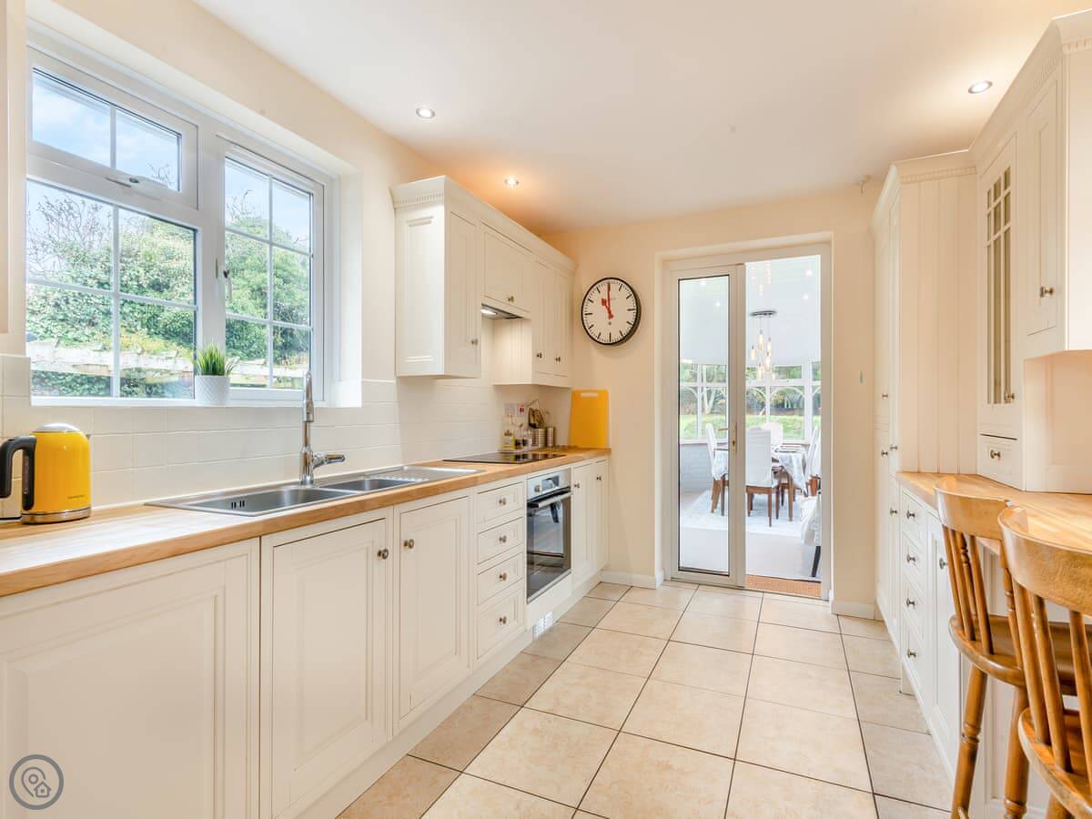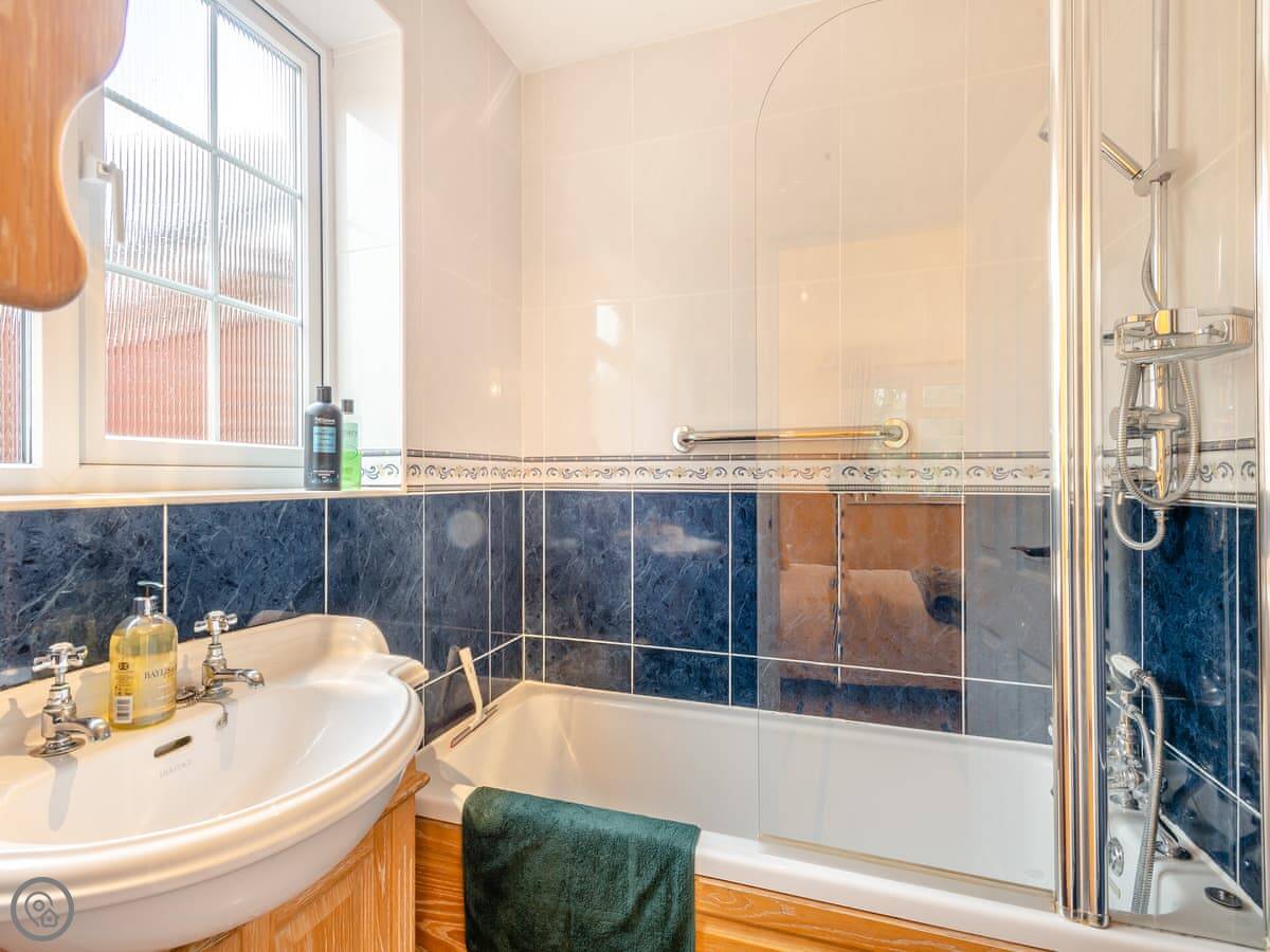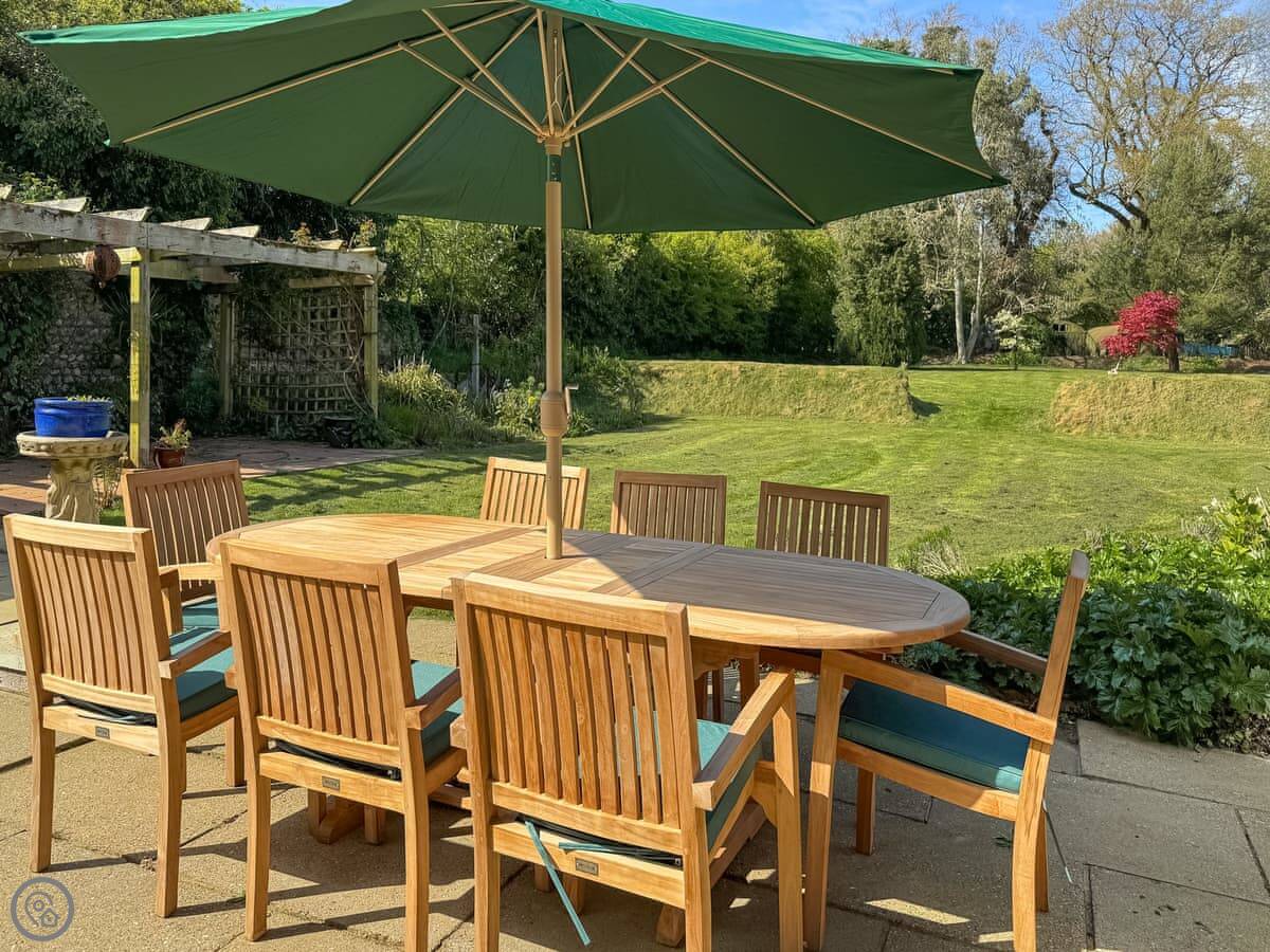It’s a 5 Star property, which means it’s well equipped and finished to a high standard. It’s big and functional for a family or a group. Two bedrooms are on the ground floor, one with an en suite. There’s also a separate shower room down there. Upstairs is the main bedroom and a bunk room. The garden is large, fully enclosed and mainly lawn. It’s safe for kids to run around.