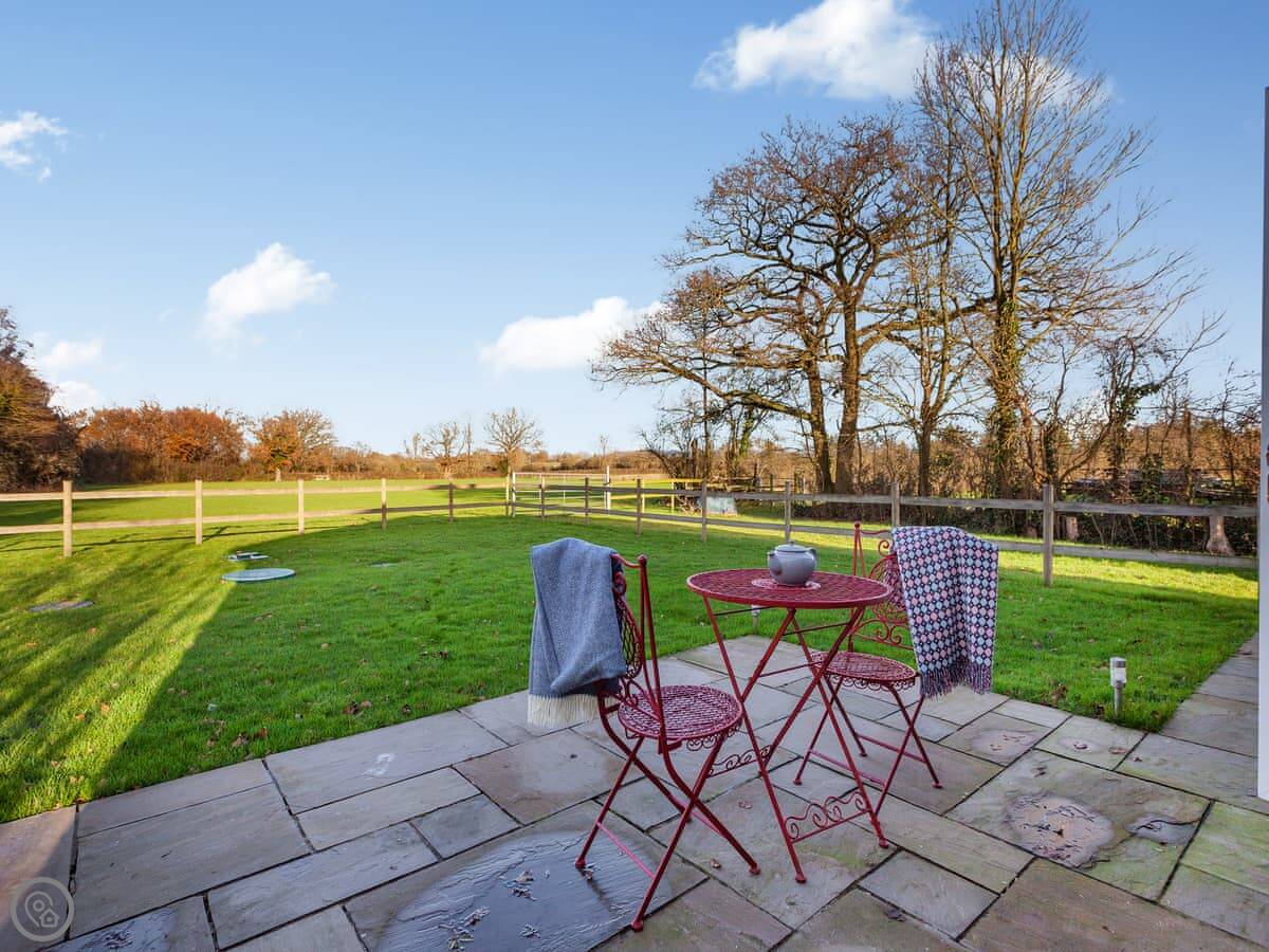 Outside there's a patio with seating and a barbecue. The garden is enclosed. Because it's quite rural, there's very little light pollution. On a clear night, you can see a lot of stars.