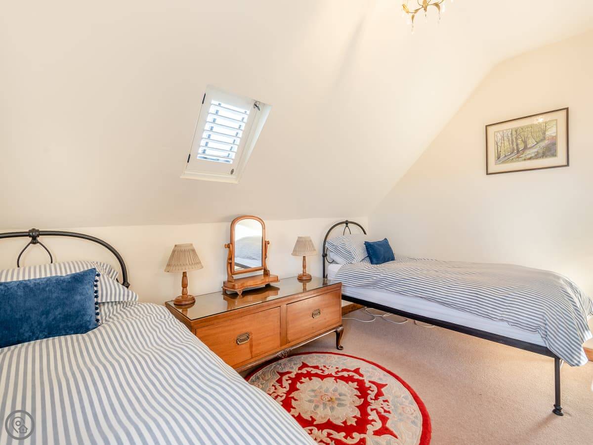 It sleeps four. Two bedrooms, one is a double and one has twin beds. There’s one bathroom with a shower. It’s got a 4 Star rating. It’s comfortable and well looked after.