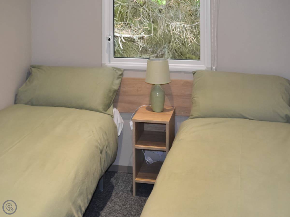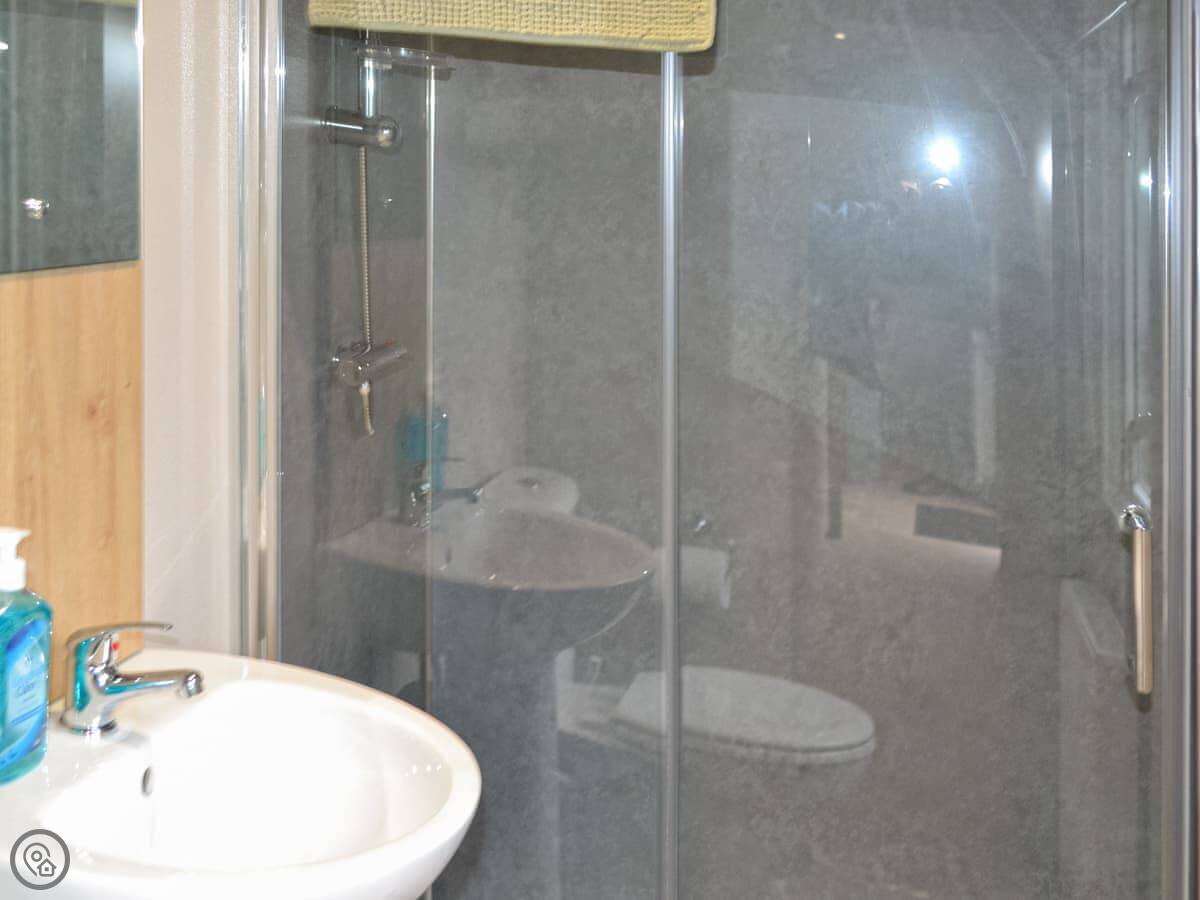 It sleeps four in two bedrooms: one double and one with two singles. There's one shower room. It's got a 4 Star rating, which means it's comfortable and everything works. It's not huge, but it's well laid out. The living area is open plan with the kitchen.