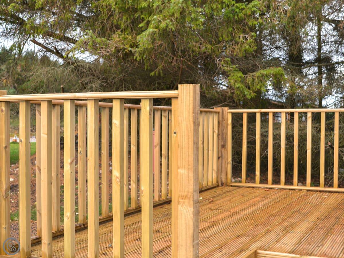 The Finch is a mobile lodge in a small park by the River Findhorn, near Forres. It's detached, so you've got your own space. The park itself is quiet and looks out over fields and the river.