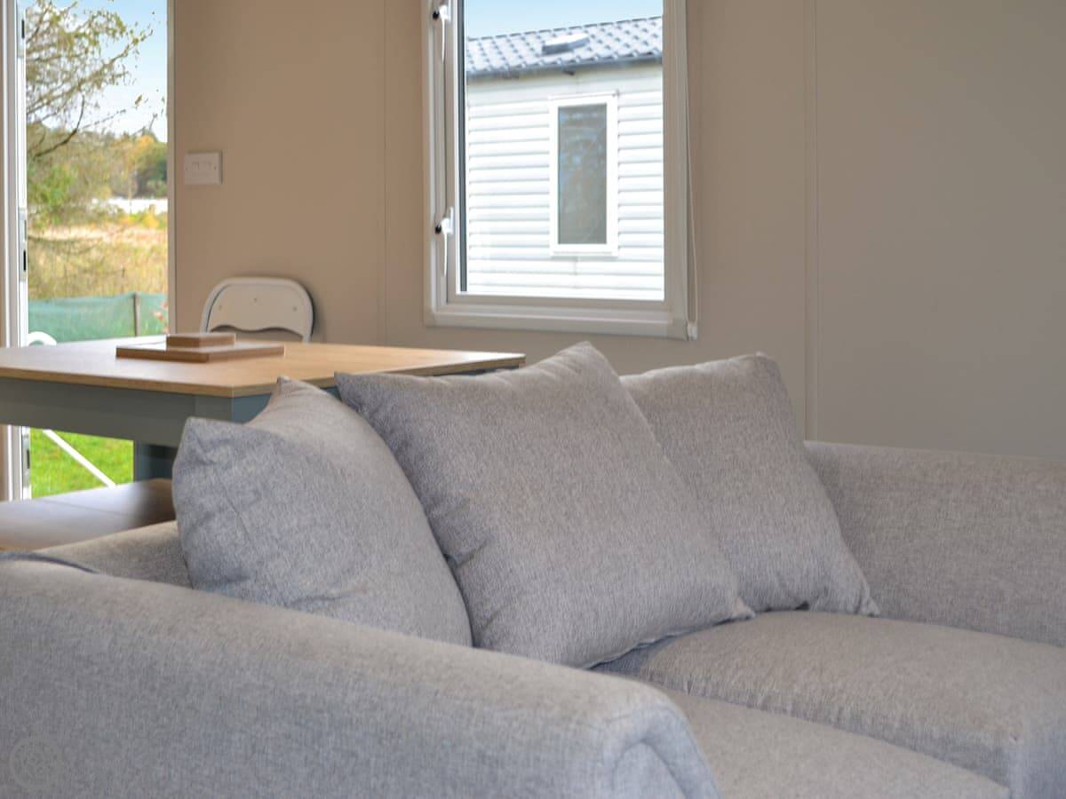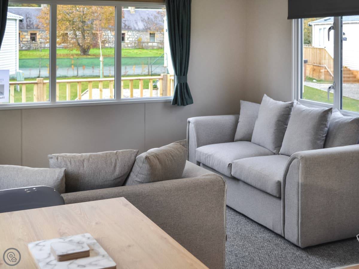 The Falcon is a mobile lodge in Forres, Moray. It's detached. You're about two hundred yards from the River Findhorn. There are some permanent caravans nearby, but you have your own space and parking.