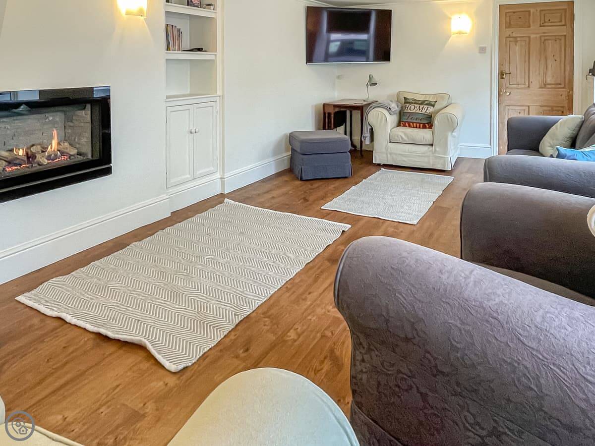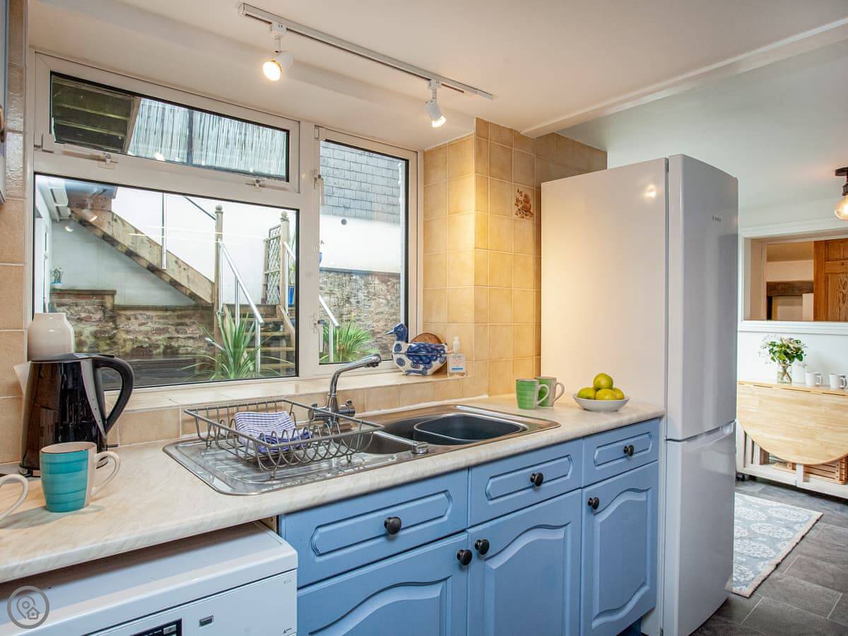 There's a living room and a dining room, both with gas fires. The kitchen has what you need. There's an interior courtyard off it, which is handy for dogs or wet coats.