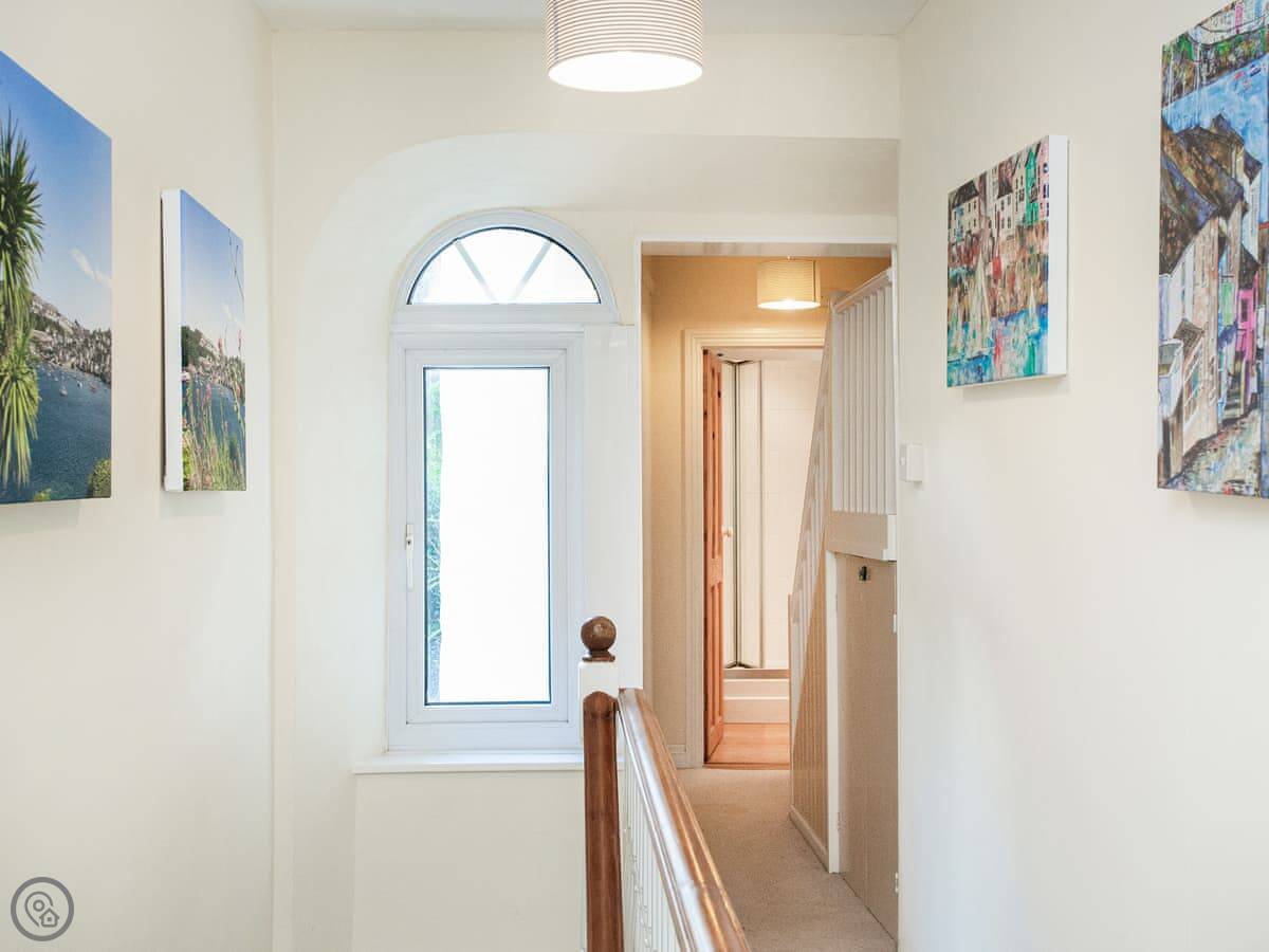 The cottage sleeps eight. Four bedrooms, two bathrooms. It's got a 4 Star rating, so it's comfortable and well looked after. It's on three floors. The stairs are cottage stairs, so they're a bit steep and narrow in places. That's just how it is.