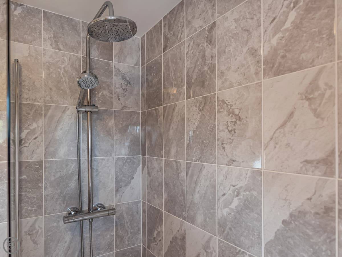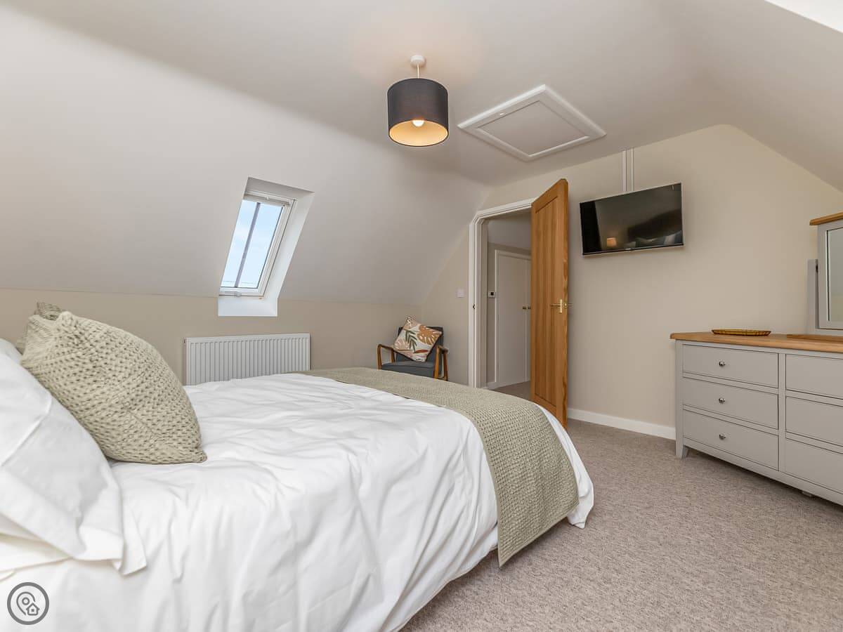 It sleeps four in two bedrooms. One double and one twin. There's one bathroom with a shower over the bath. The garden is enclosed, so it's secure for dogs and kids. You can fit two cars on the drive, and there's an electric vehicle charger.