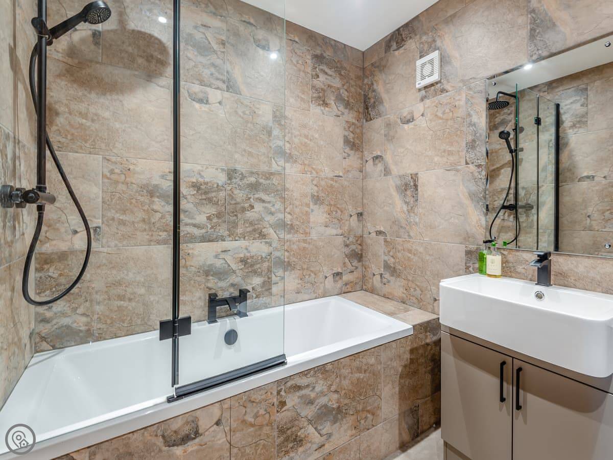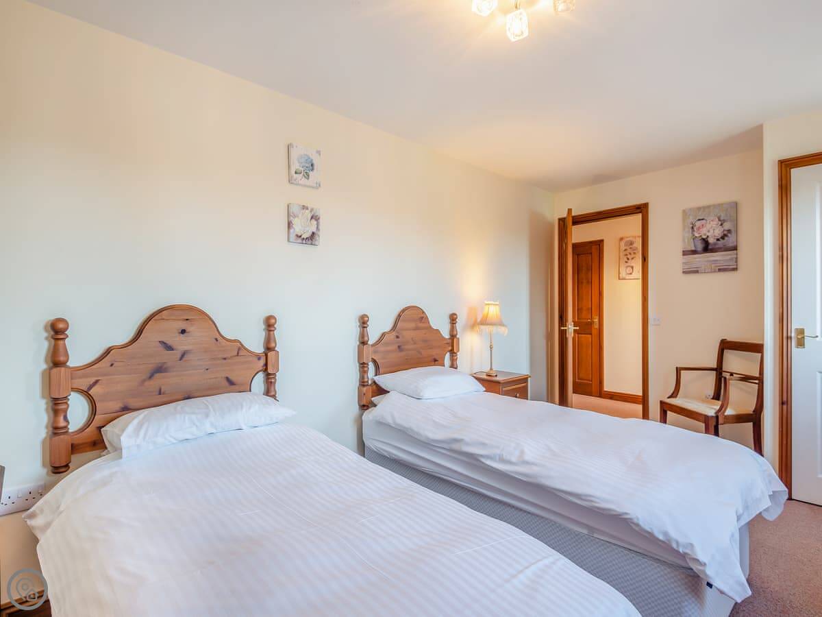 It sleeps six in three bedrooms. The layout is a bit different. There's a super king bedroom and a wet room ensuite all on the ground floor at the back, which is handy. Upstairs, which is accessed from the front door side, there are two more bedrooms, both with two single beds each. There's only the one bathroom, which is that ensuite downstairs, so everyone uses that.