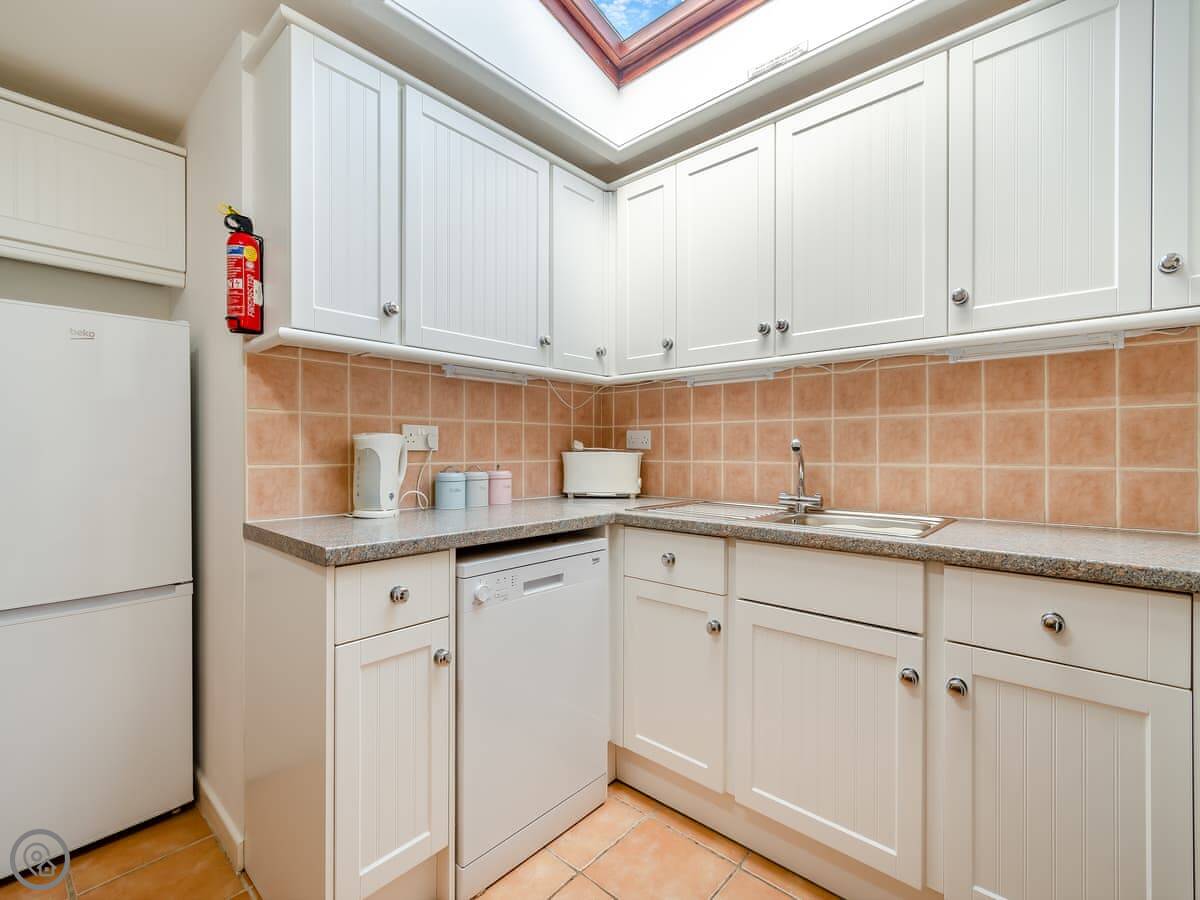 Inside, you've got a TV and WiFi. There's a dishwasher, and all your bedding and towels are included. A travel cot is there if you need it. Parking is right outside the cottage. No dogs, I'm afraid.