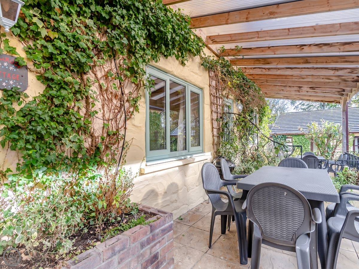 Your bit is the cottage itself and its own garden area. The courtyard is shared with the other cottages. There's a play area for kids and a games room on site that everyone can use. There's also a washing machine in a laundry room.