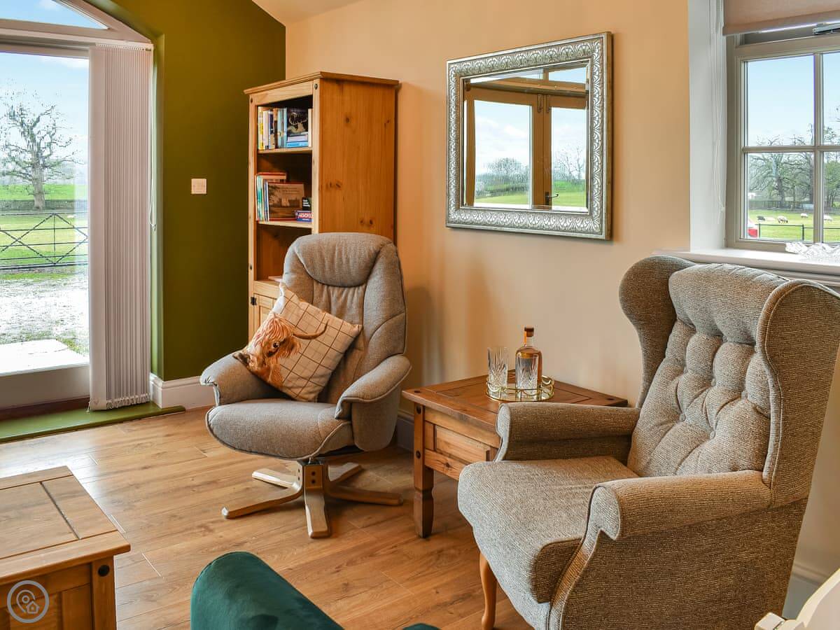 It sleeps up to six, but there are two double bedrooms. That means people will be on the sofa beds in the living area. It's a 4 Star place, so it's comfortable and well kept. All the rooms are on the ground floor, which is handy. Underfloor heating throughout.