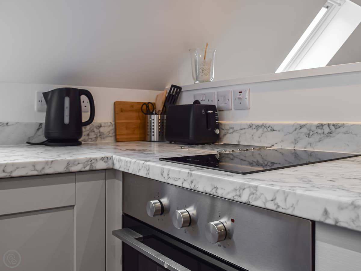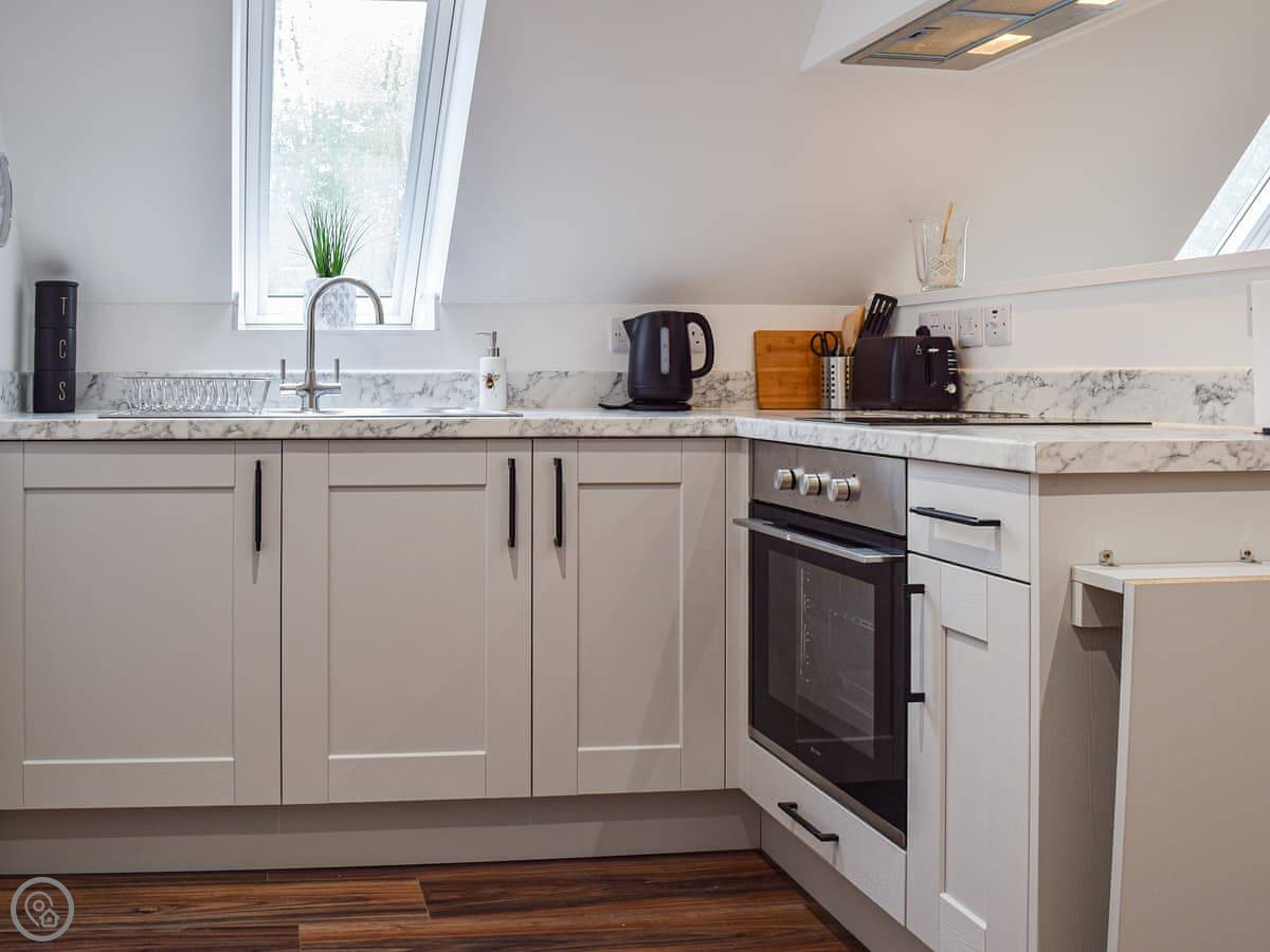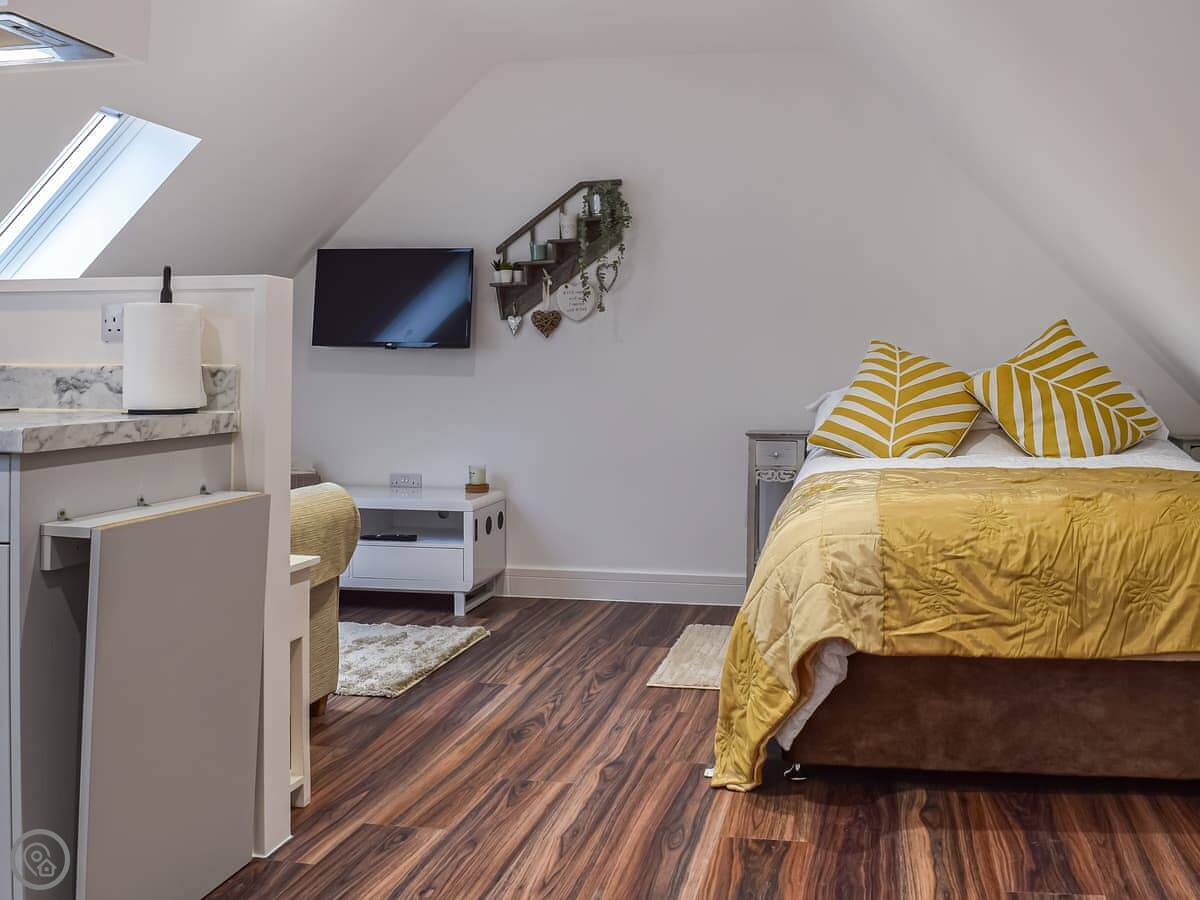 It's one open-plan room really, with a double bed, a sitting area and a small kitchen. There's a separate shower room. It's a 4 Star place, so it's comfortable and modern. It's just for two people.