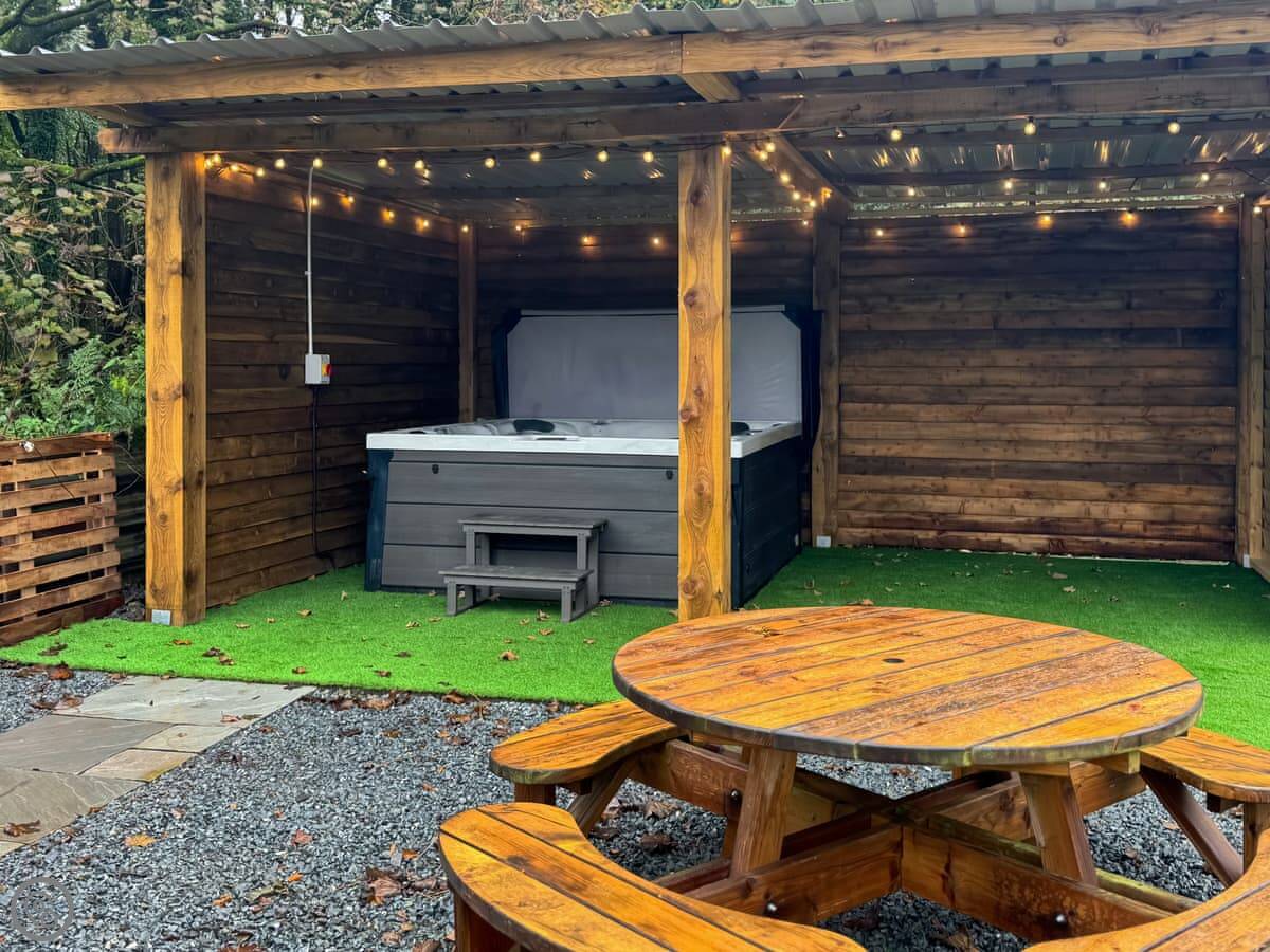 The main thing outside is the hot tub. It's at the back in a private, enclosed garden. The garden is yours to use.