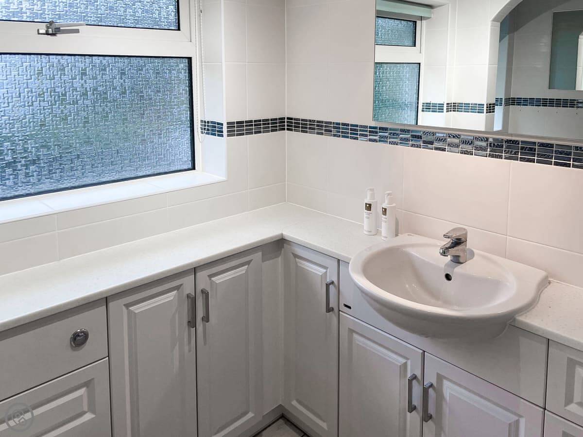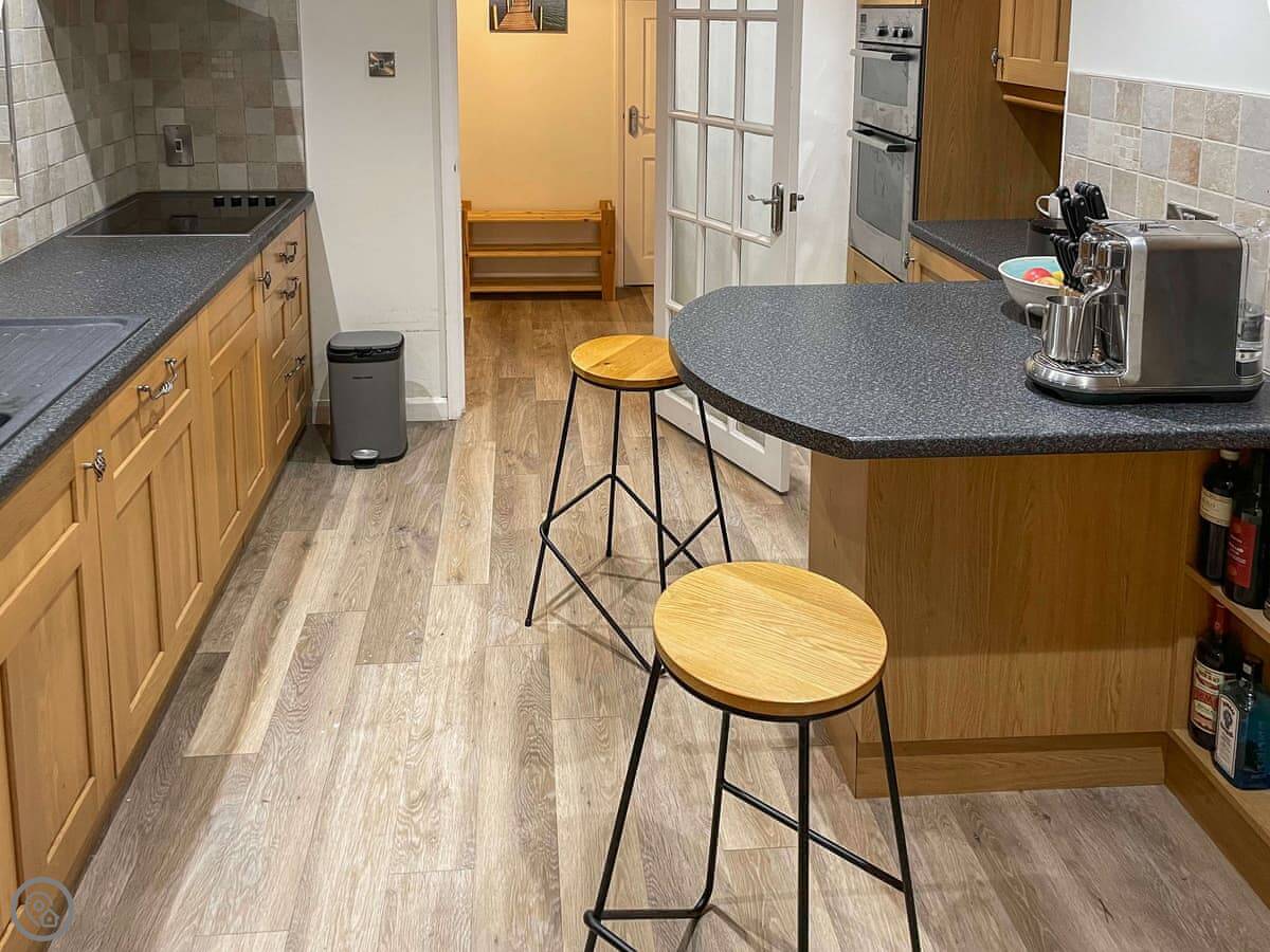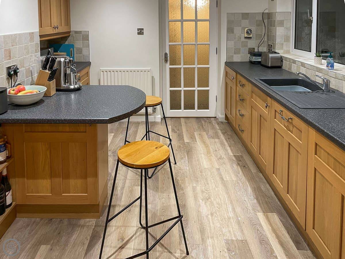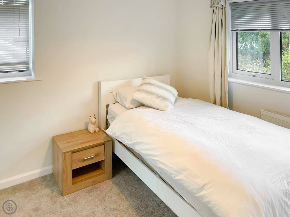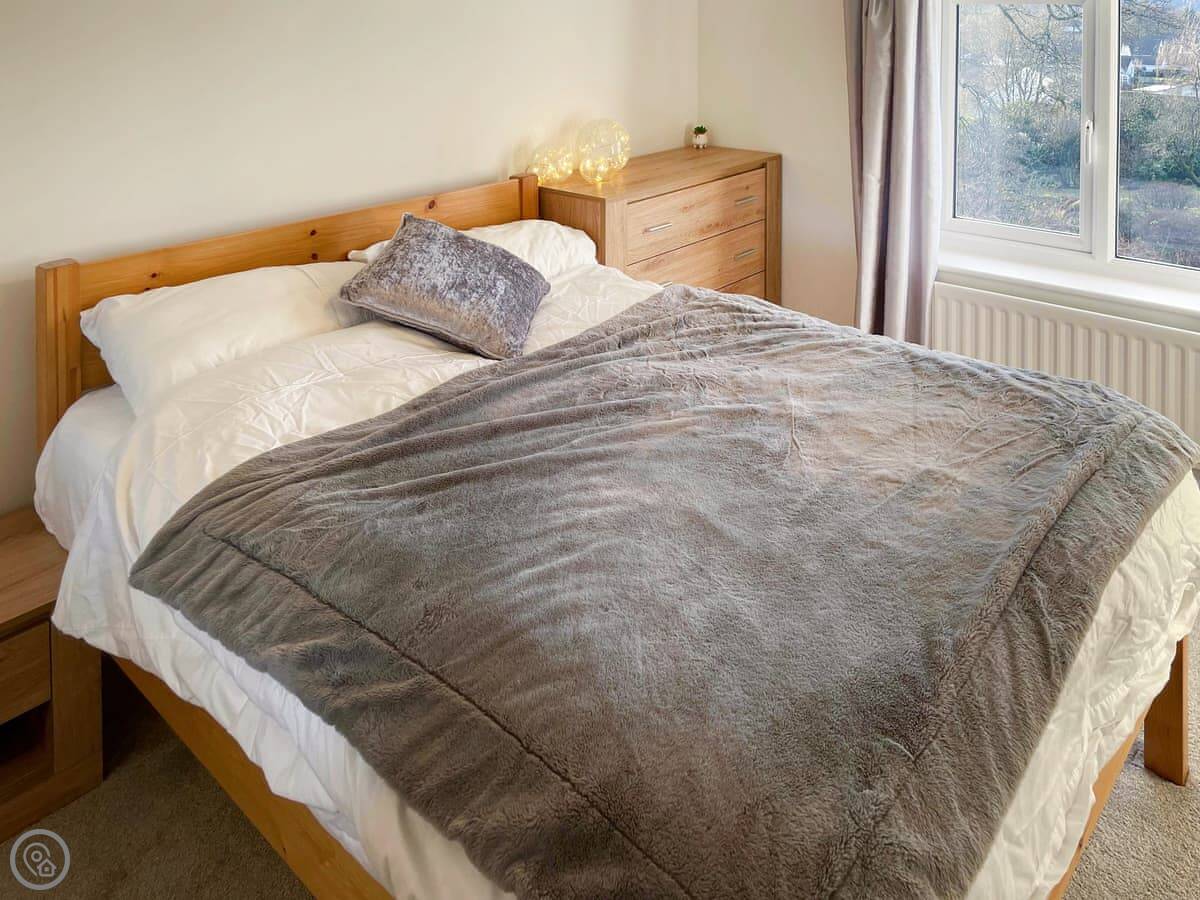 It sleeps five, in three bedrooms. Two doubles and a room with a three-quarter double bed. There are two bathrooms. One upstairs with a bath and shower, and a separate shower room downstairs. It's a 3 Star rating. It's comfortable and clean, not high-end.