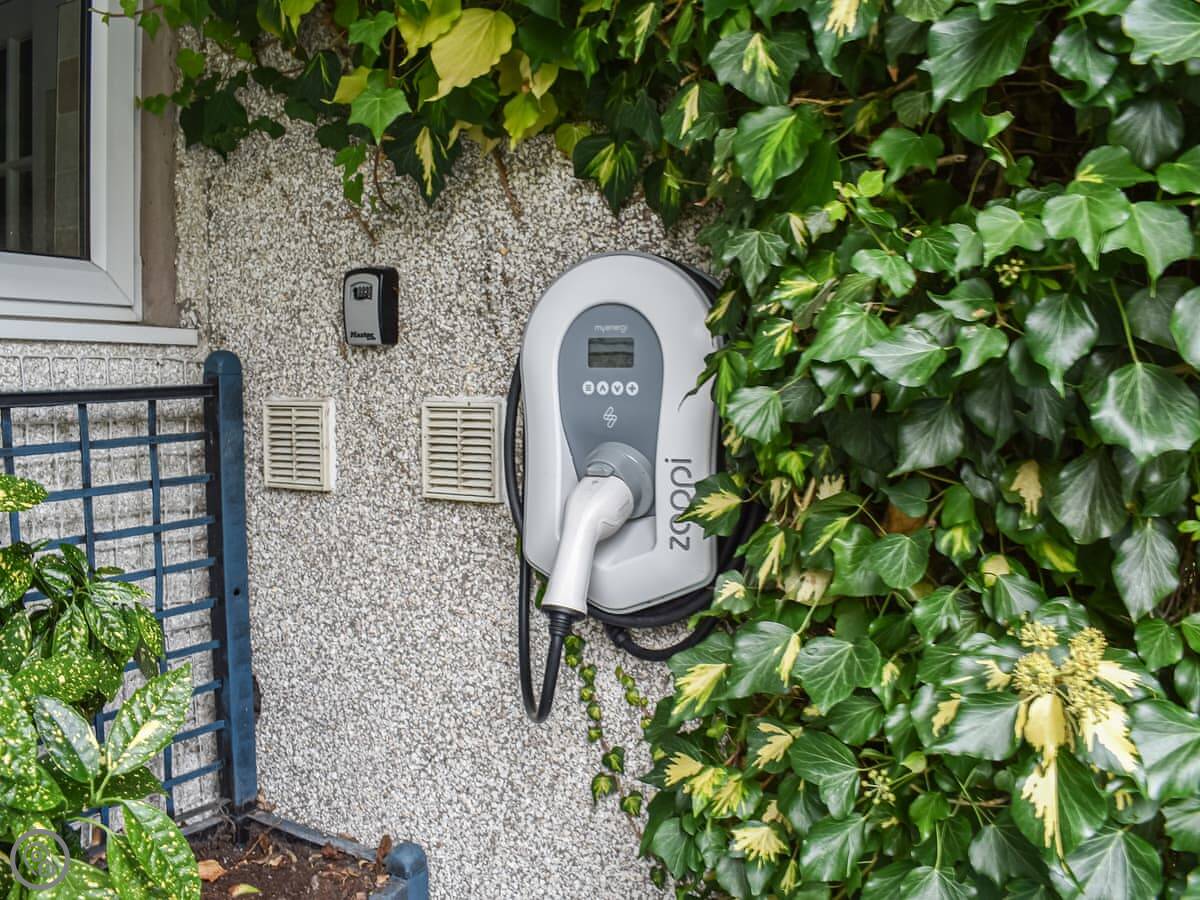 Facilities include parking, an electric vehicle charger, WiFi, a TV, a washing machine, and a dishwasher. Bedding and towels are included. You can bring up to two dogs.