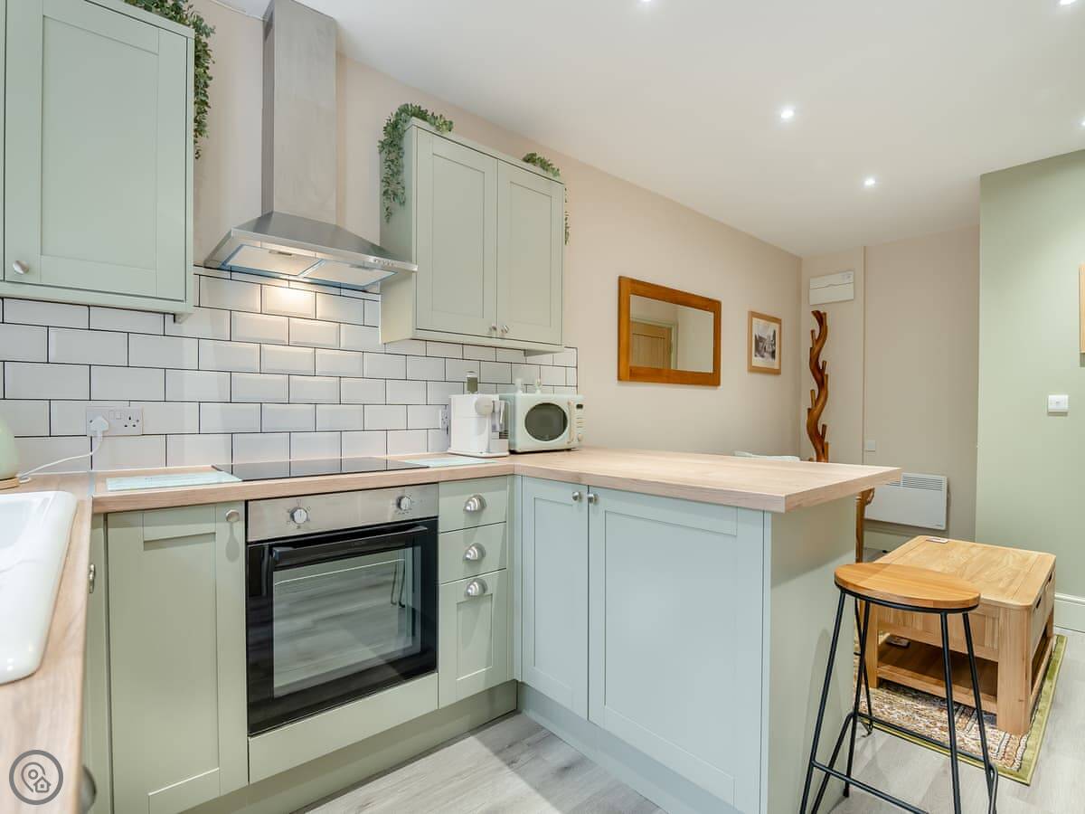 It's a 5 Star rated cottage. That means it's well looked after and has everything you need. It's all open plan downstairs, so the kitchen, living and dining area are in one room. There's a shower room on the ground floor too. The bedroom is upstairs. It's a standard cottage staircase, so just mind your head.