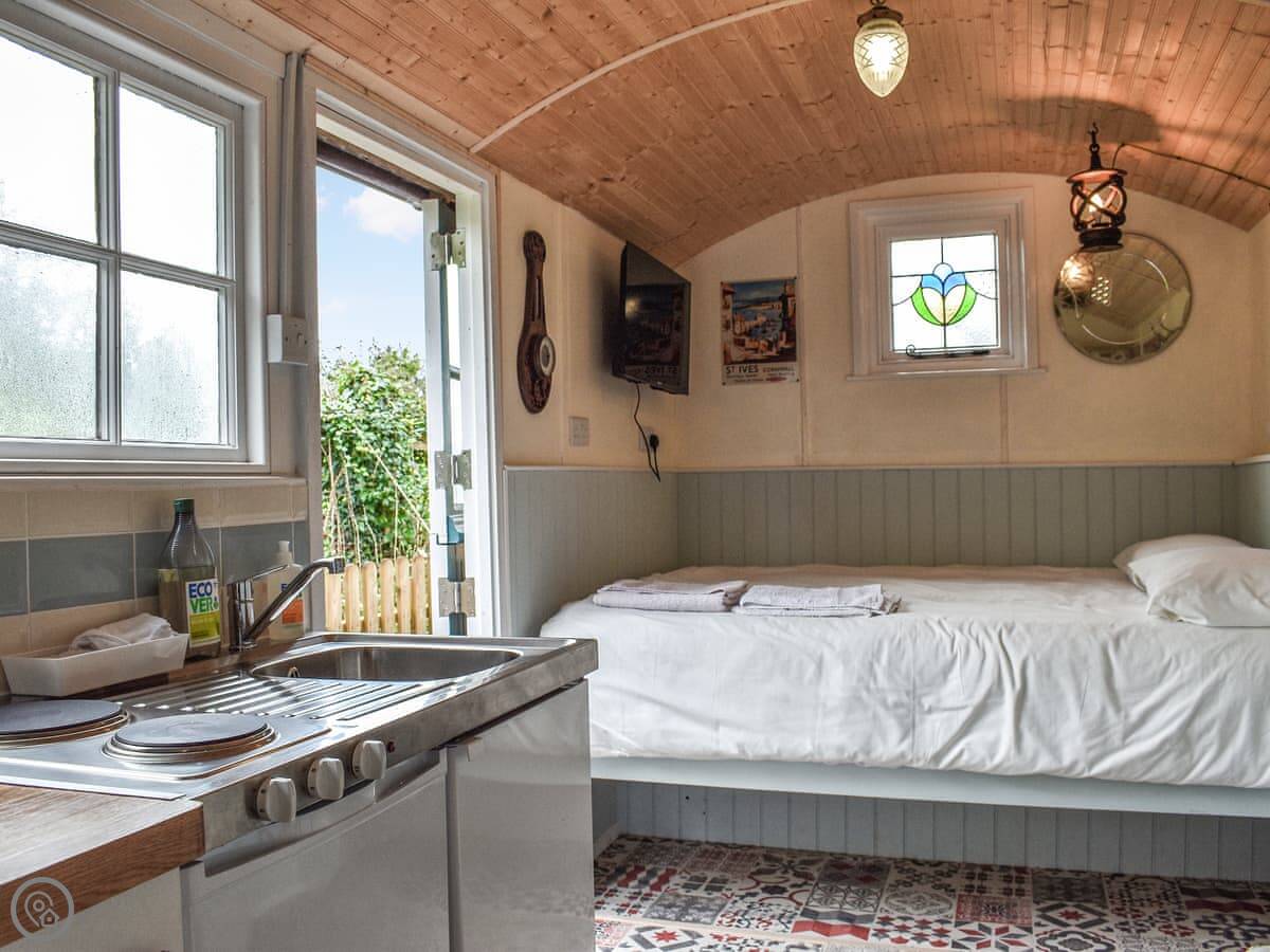 Field View is a shepherd's hut in Little Polgooth, near St Austell. It's in a field so it's detached and private.