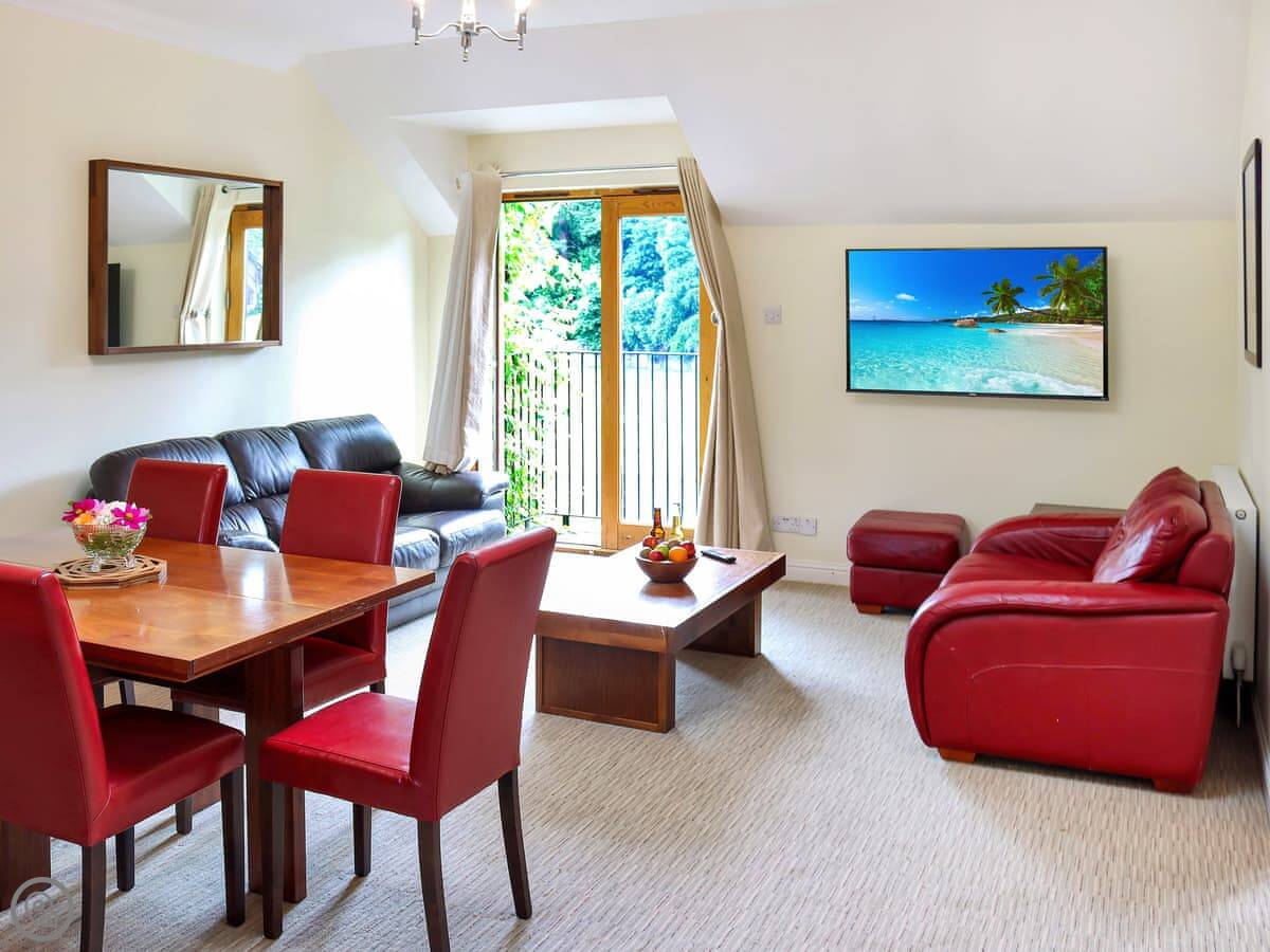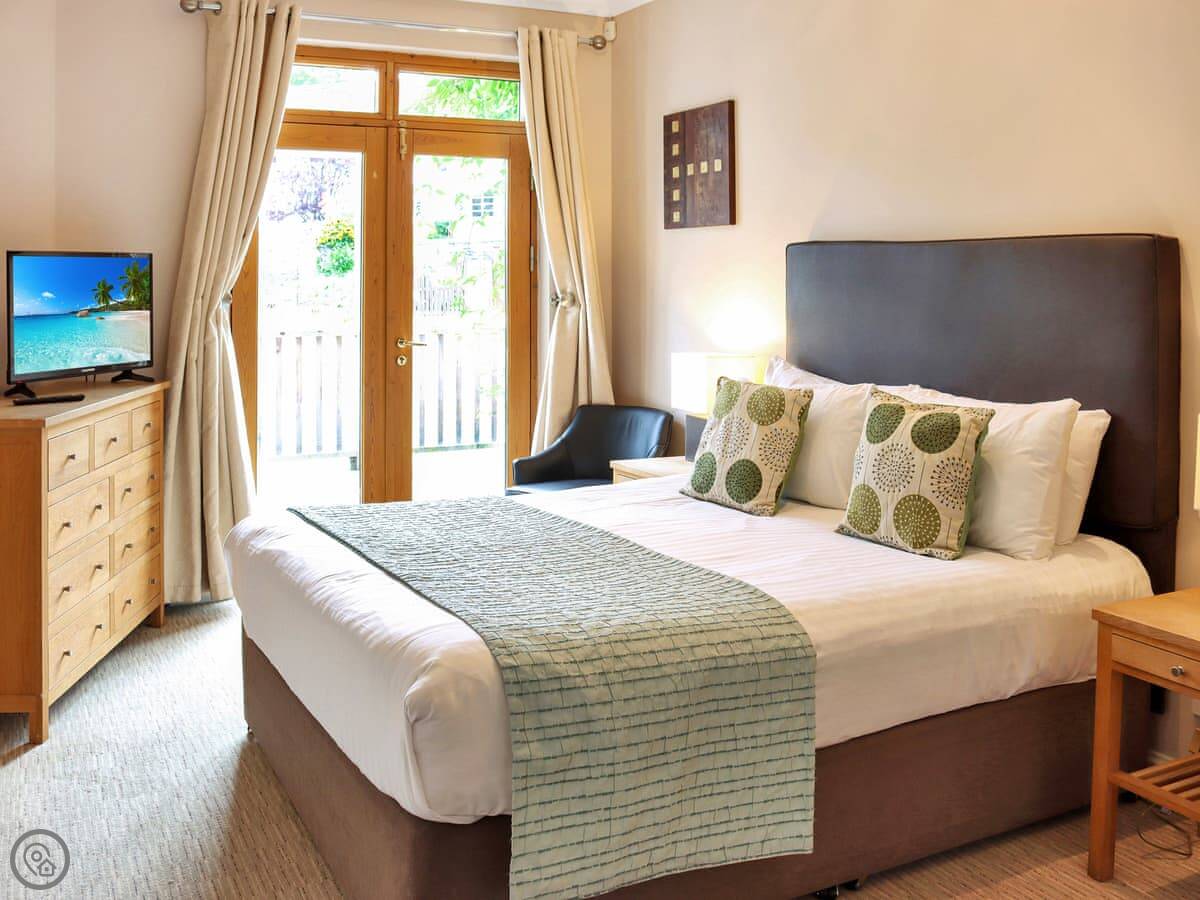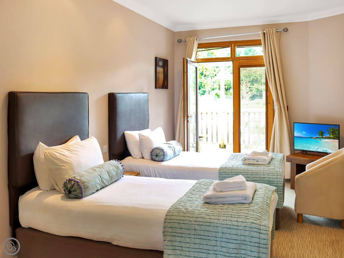 As a guest at the lodge, you can use the hotel facilities. That includes the indoor swimming pool, the gym, and the spa. You can also eat at the hotel restaurant or just go up for a drink. It's a short walk up the hill.