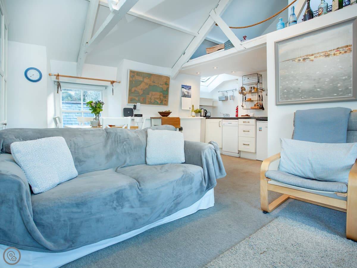 The Lookout is in Polruan, which is over the water from Fowey. It's a tall, thin cottage right on the harbour. You're looking straight out at the water and the boats coming and going.