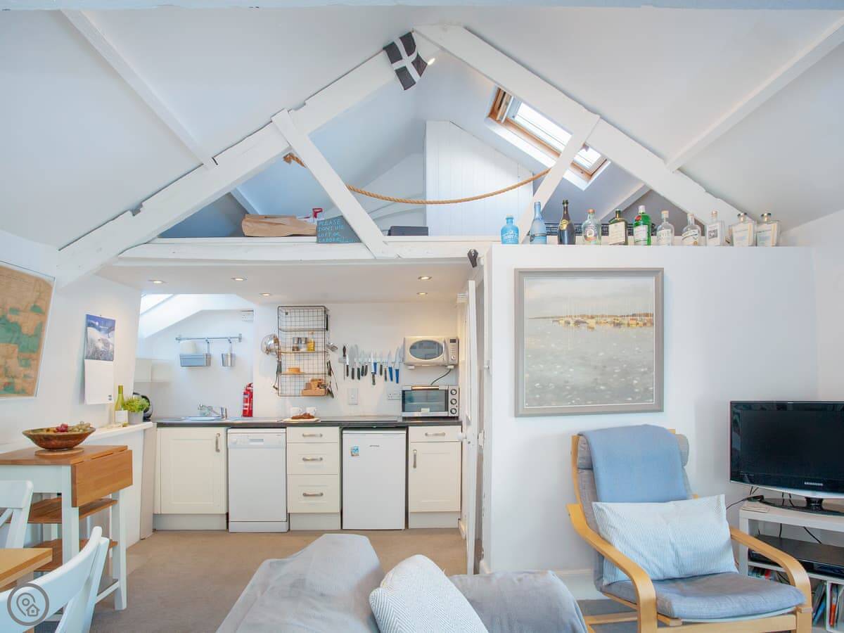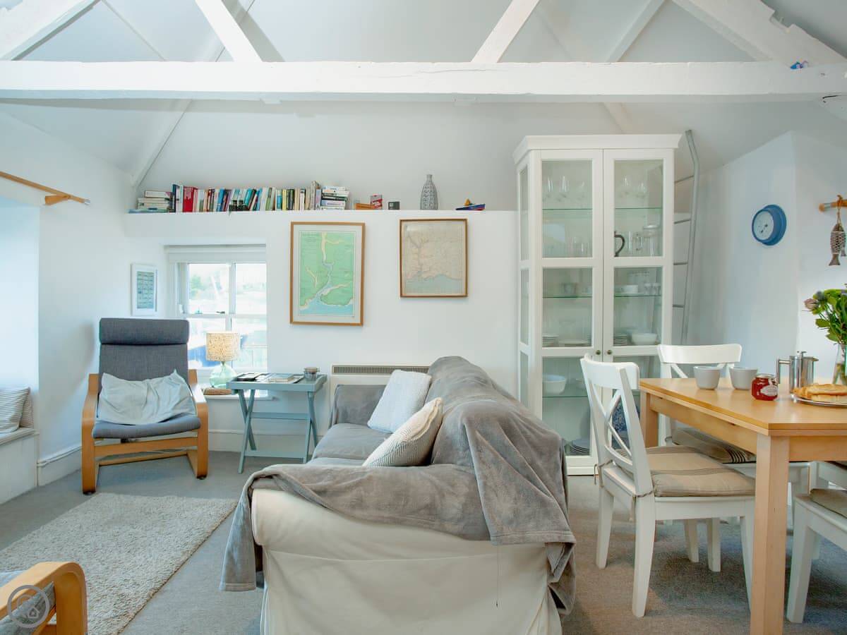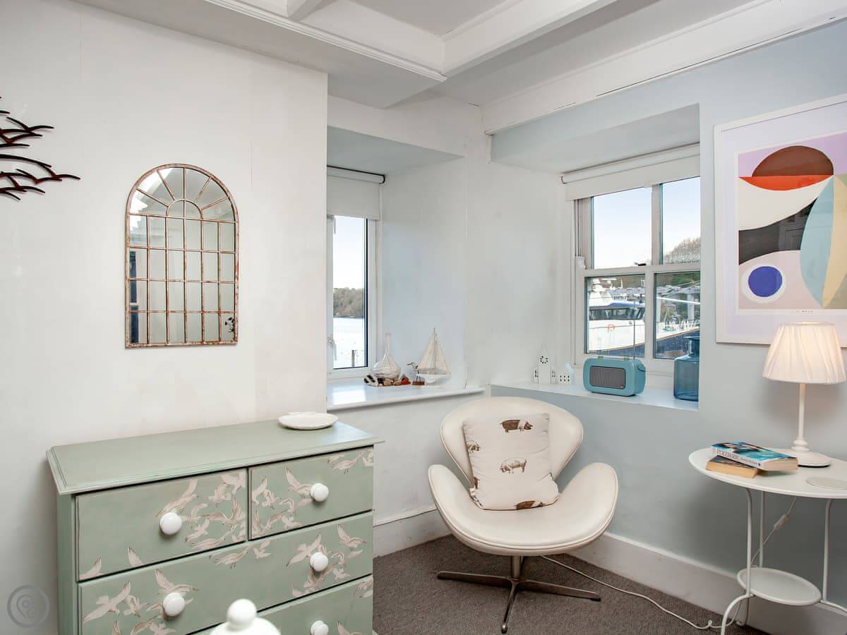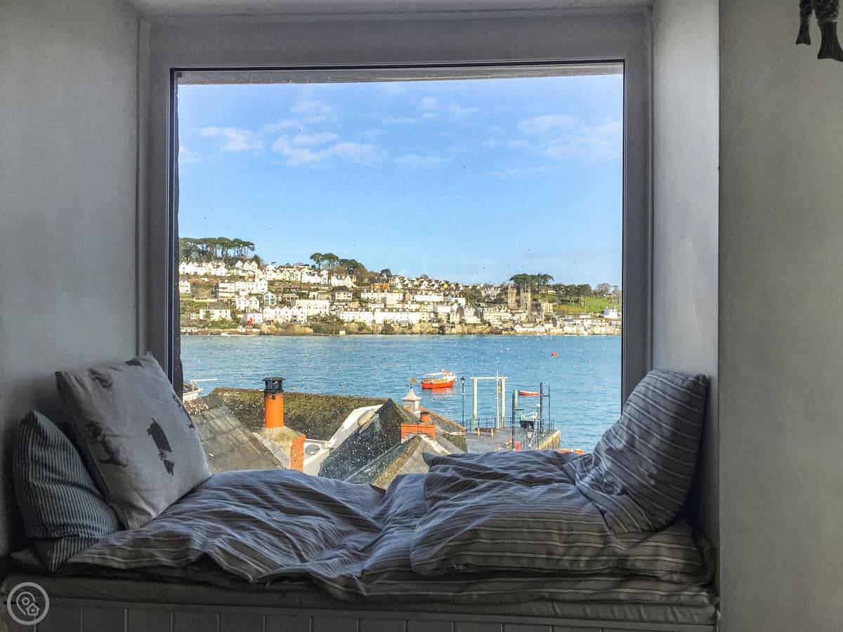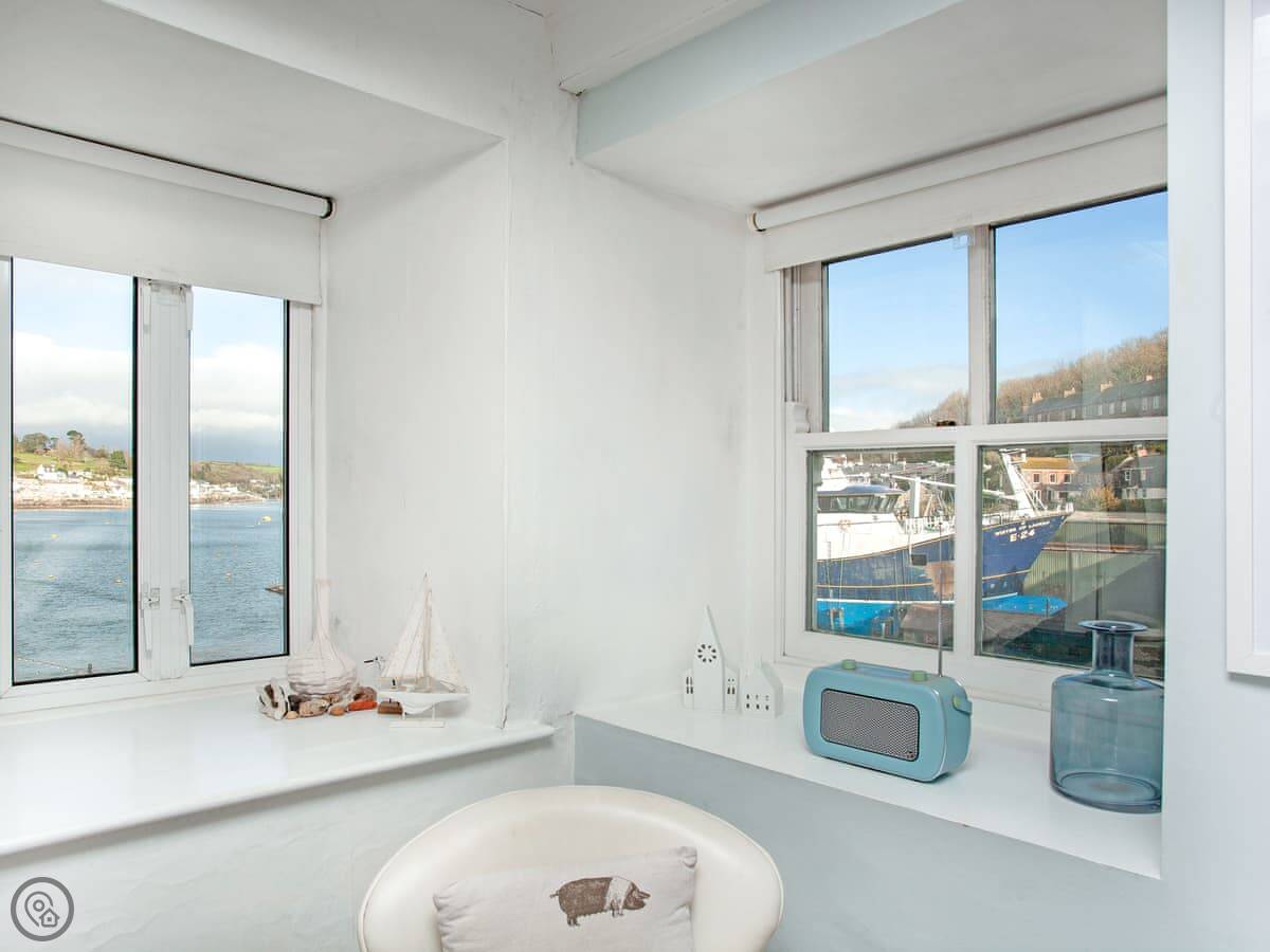 The best bit is the view. The main living space is up on the second floor. There's a window seat there where you can just sit and watch the harbour. The bedrooms have the same view over the water.