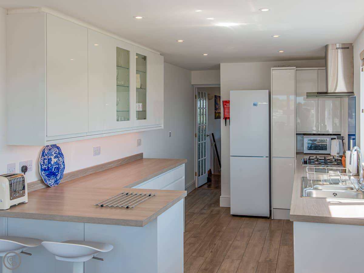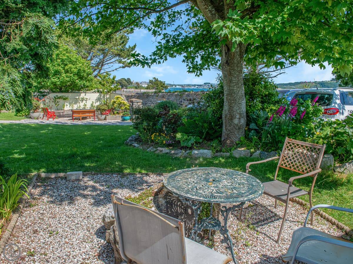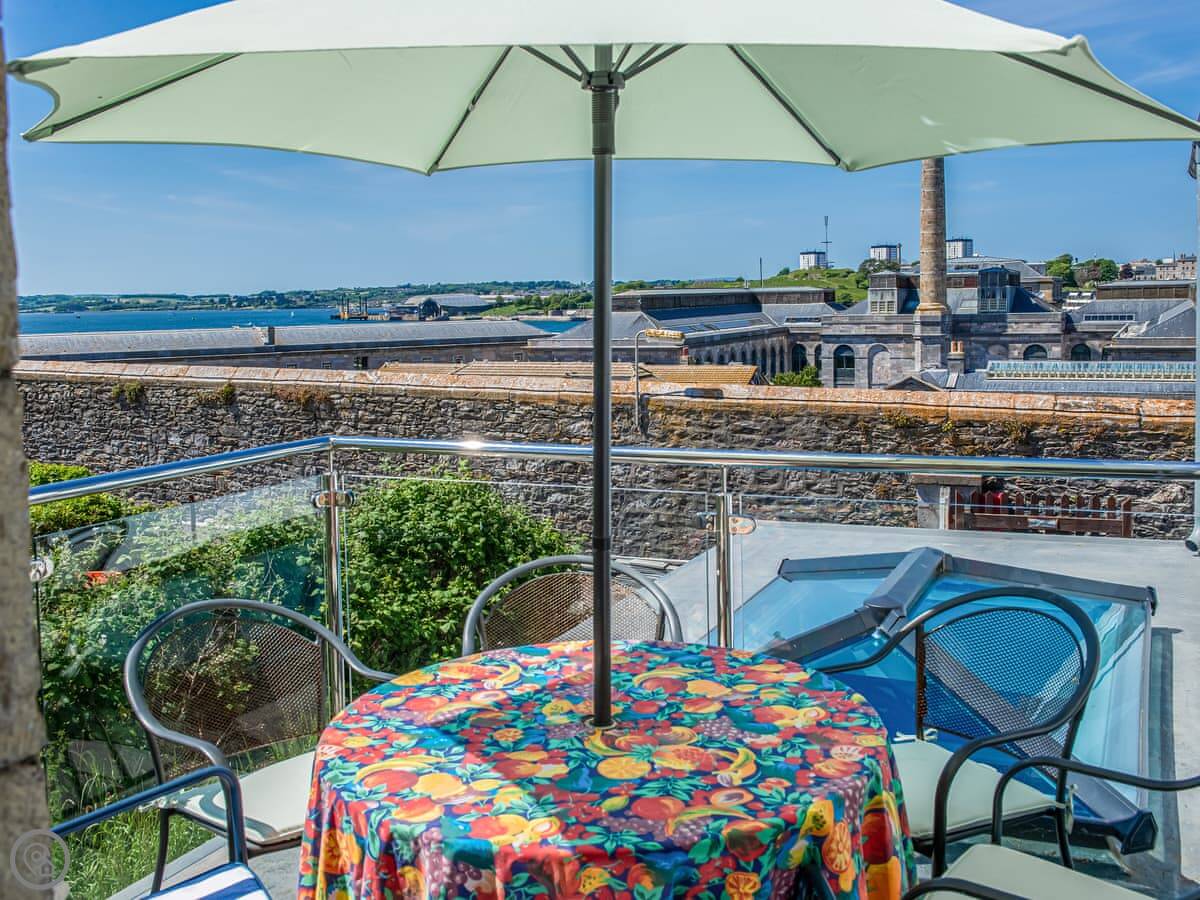 You get great views from the front and back balconies, looking out across Plymouth Sound. There’s a wood burner for chilly evenings. The garden has a few different spots to sit and a barbecue.