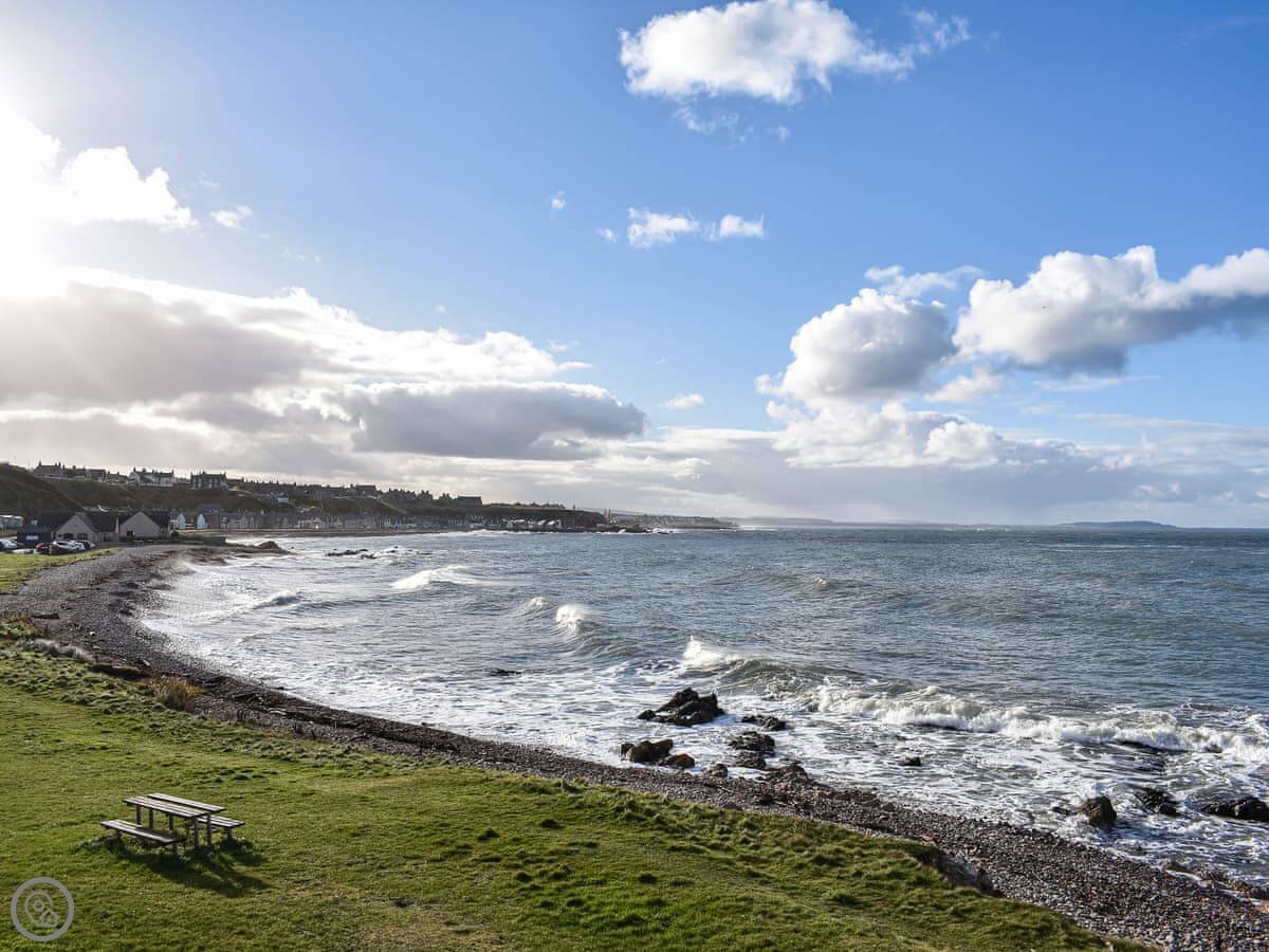 It's right beside Strathlene Golf Course. The coastal path is basically on the doorstep if you want to walk. A few miles along that path gets you to Covesea Lighthouse.