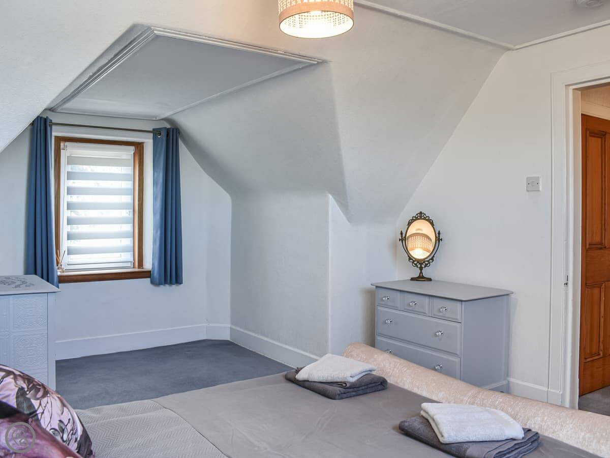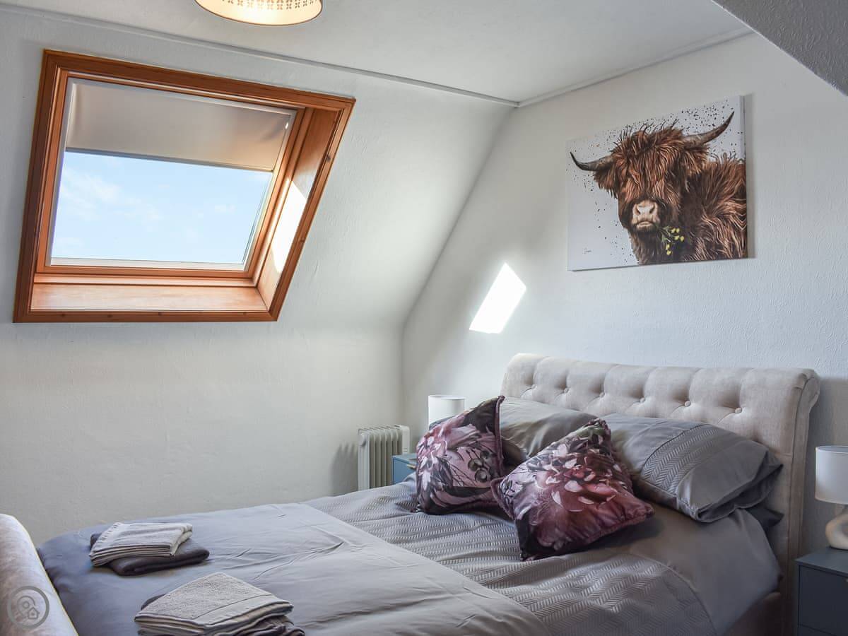 Strathlene Lodge is in Buckie, on the Moray Firth coast. It's a detached bungalow, so everything's on one level. You get the place to yourselves, with a garden and decking out front that looks straight over to the sea.