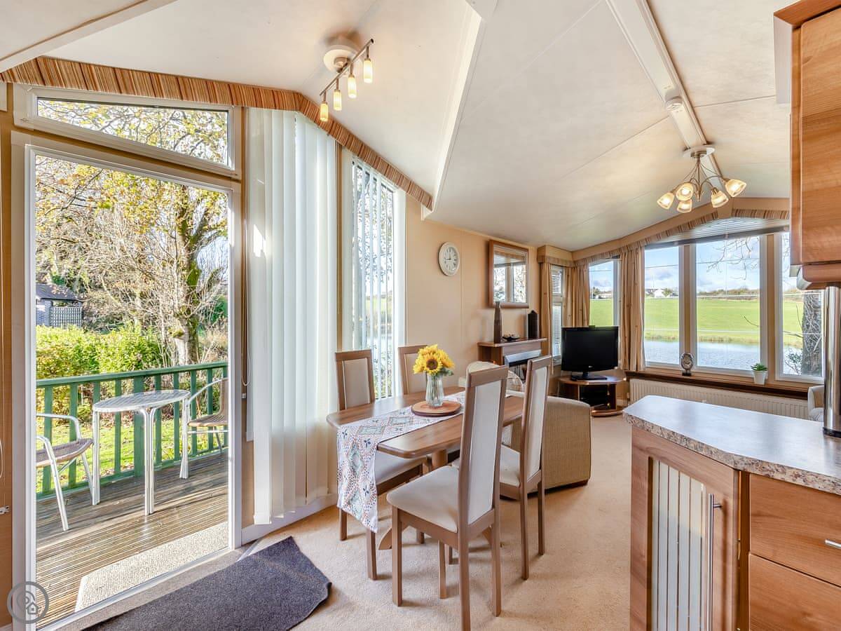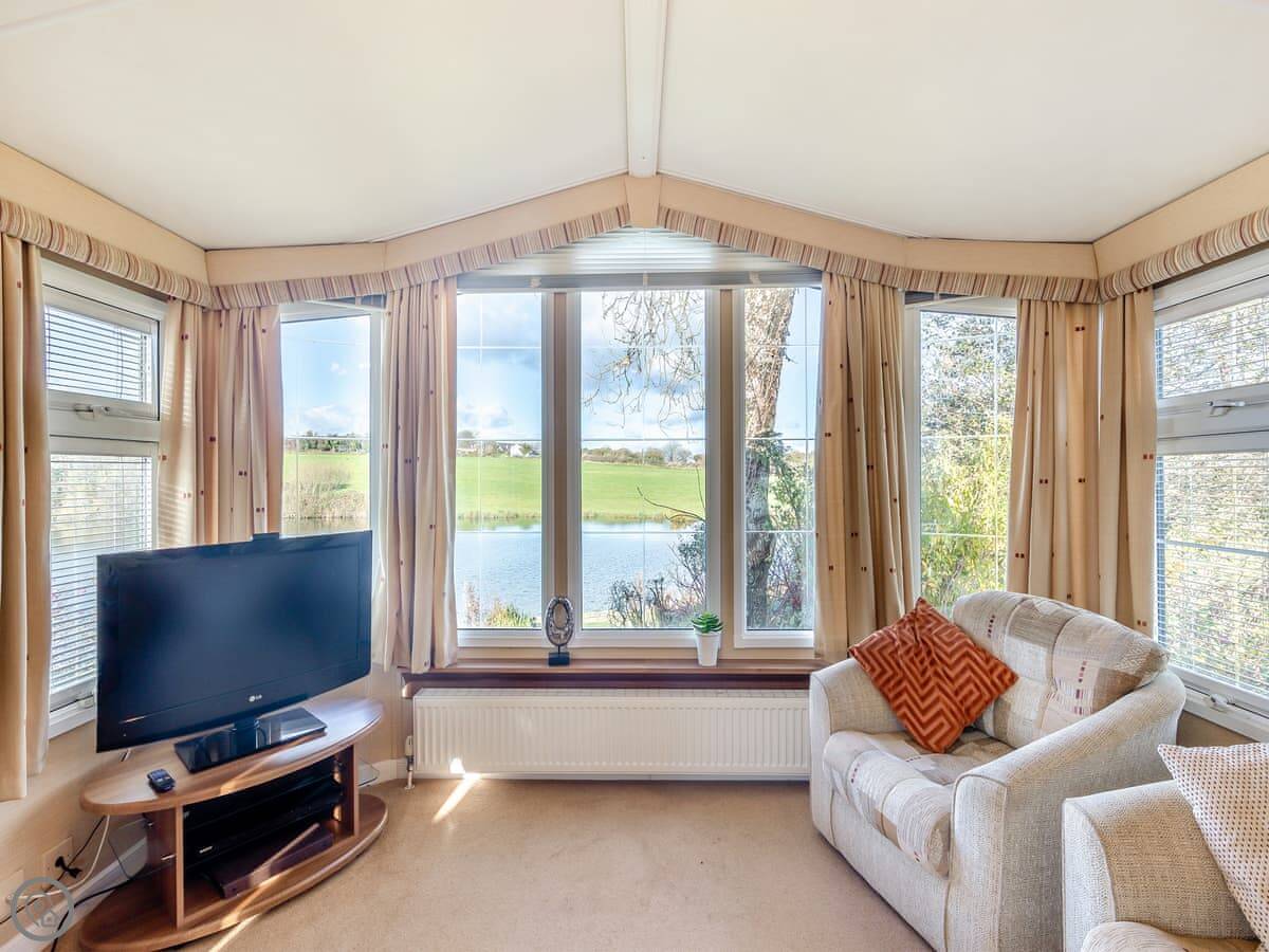 The main thing about it is the view. It looks right out over a small lake. It's very quiet there. You've got your own bit of patio and garden that's just for you.