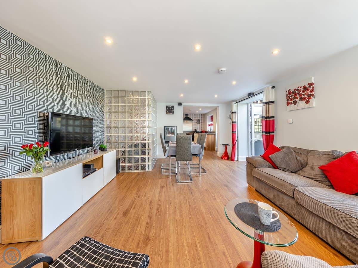 Facilities wise: there's a dishwasher, washing machine, WiFi, and a TV. Bedding and towels are included. There's a cot and a highchair if you need them. You can bring up to two dogs. Parking is right there.