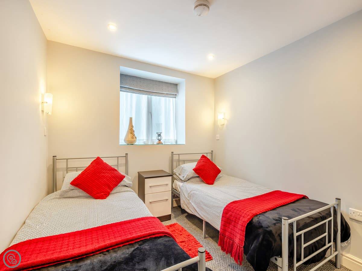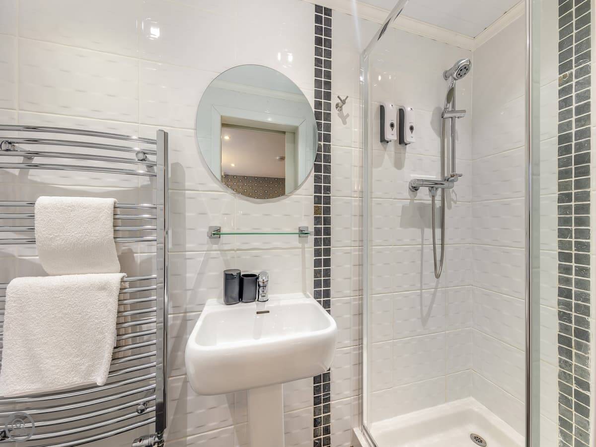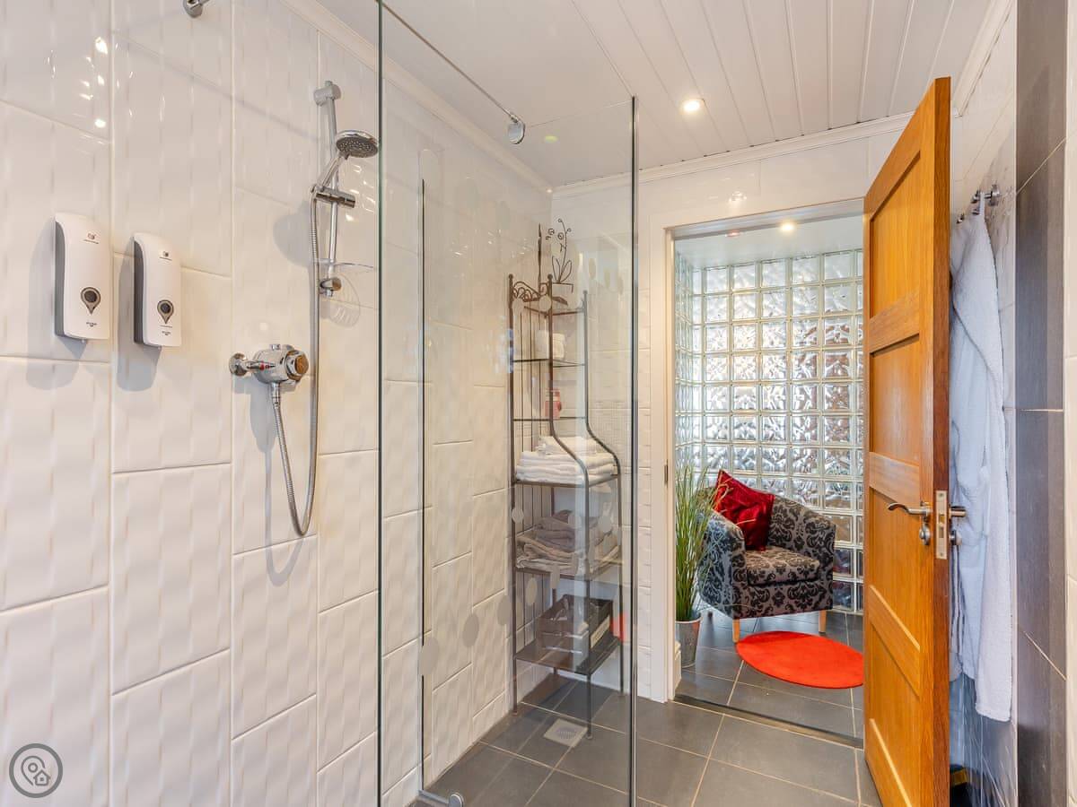 It sleeps six in three bedrooms. There are two bathrooms. One is a wet room on the ground floor, which is handy. It’s got a 5 Star rating, which means everything is in good order.