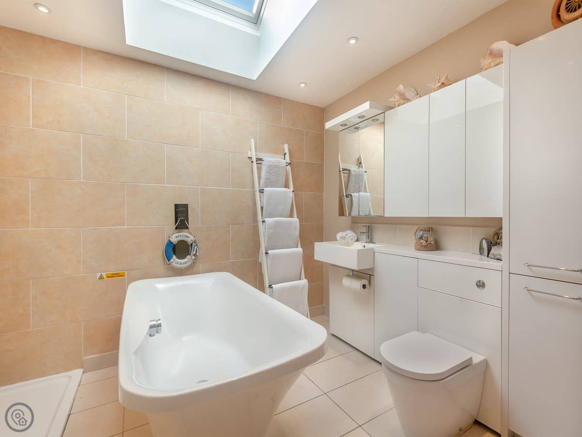 Anchor Cottage is in South Hayling. It's a bungalow, so everything is on one level. There are two bedrooms, one with a king size bed and the other has two singles that zip together to make another king, if you prefer. There's one bathroom with both a shower and a separate bath.