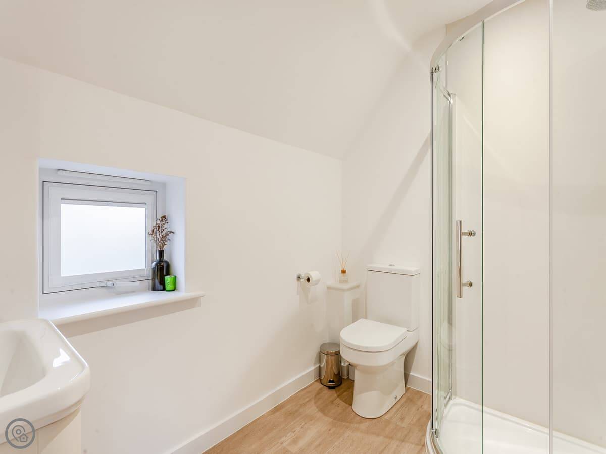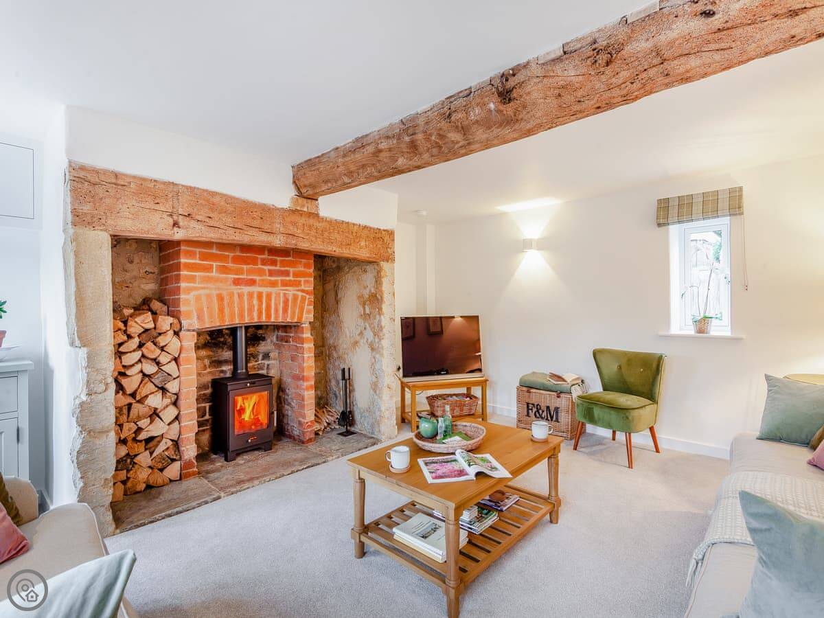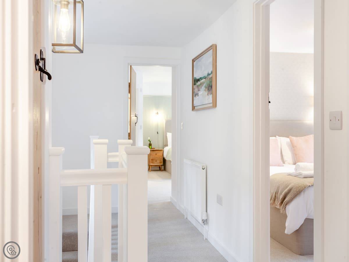 Inside, the main thing is the wood burner in the living room. It's in an old inglenook fireplace. It works well and makes the place very cosy. The stairs are a typical cottage style, so they turn a corner and are a bit steeper than modern ones.