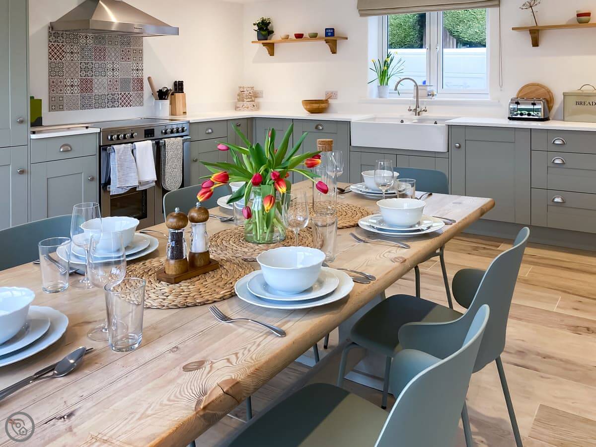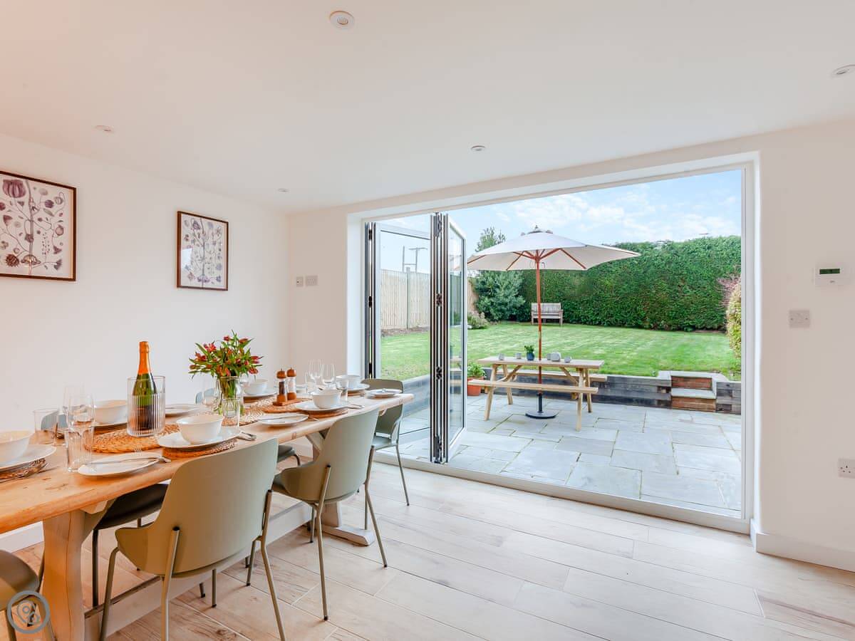 You can park right outside. The kitchen has those big folding doors that open onto the patio and garden. The garden is enclosed, which is handy if you're bringing a dog. We accept one pet.