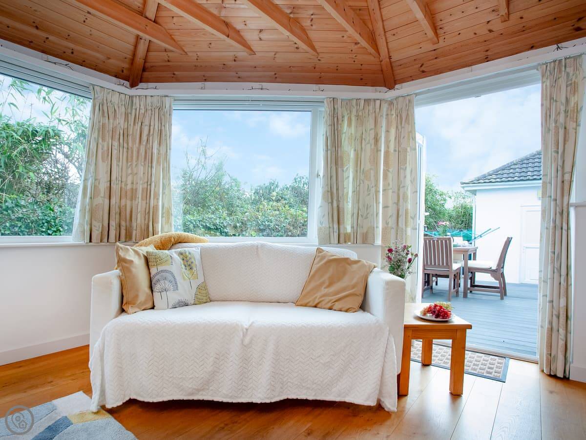 Bay Tree is a bungalow in Portscatho. It's one of the Venture houses, so it's detached. The main thing is you're very close to the beach. It's about a three-minute walk.