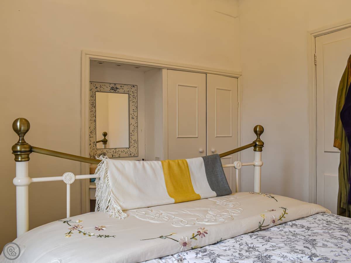 For facilities: there's a wood burner, a patio with furniture, parking for one car, WiFi, and a TV. Bedding and towels are included. No pets allowed.