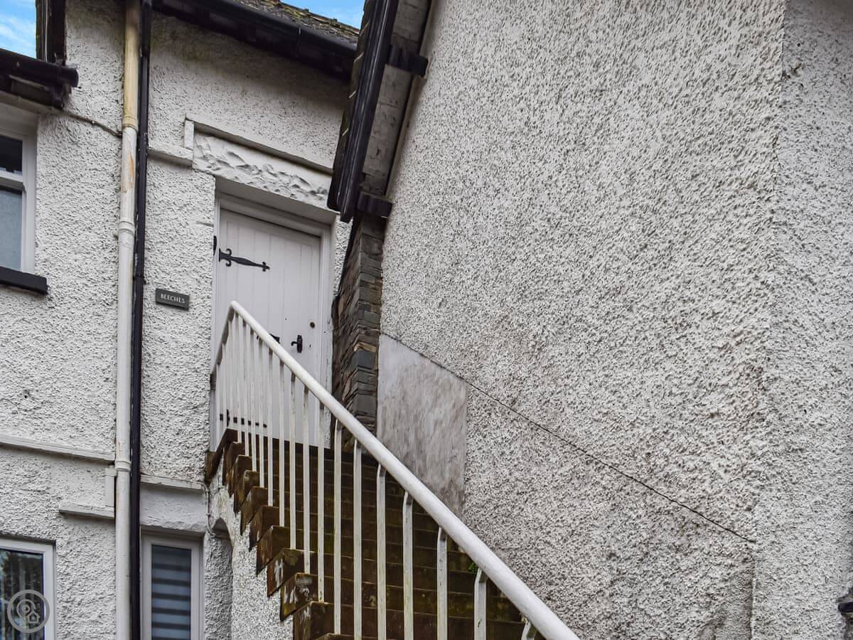 Beeches is on the edge of Bowness on Windermere. It's down a quiet, wooded lane. You have to go up some external steps to get to the front door.
