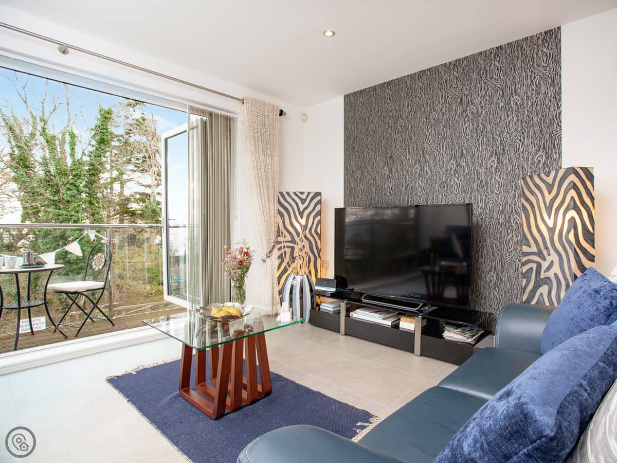 There's a private, gated path that takes you straight down to a beach. It's not a big beach, but it's quiet. The main road into St Austell is right above the building, so you can hear traffic. The windows are double glazed, which helps.