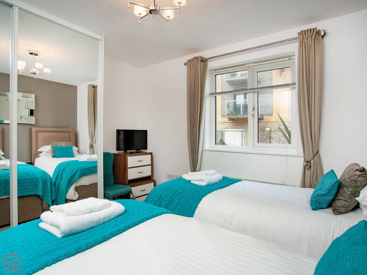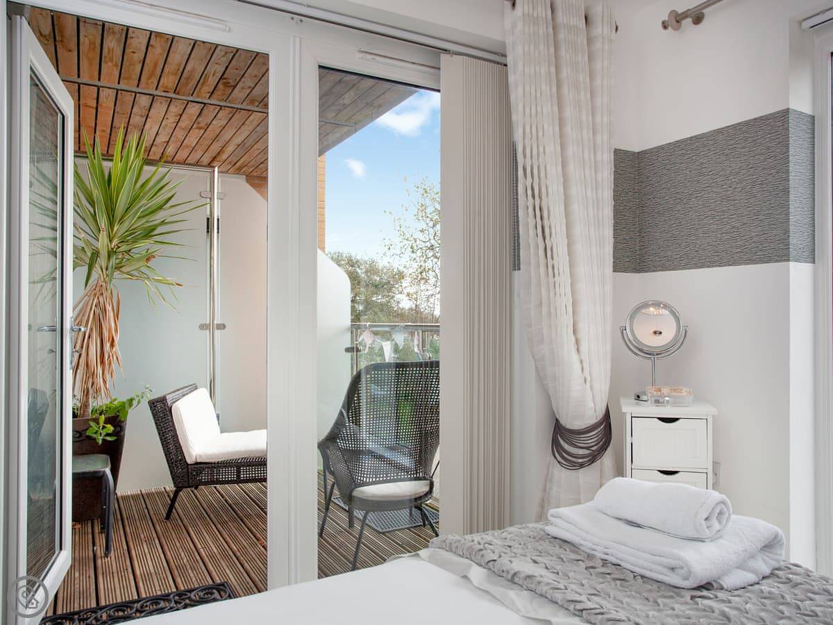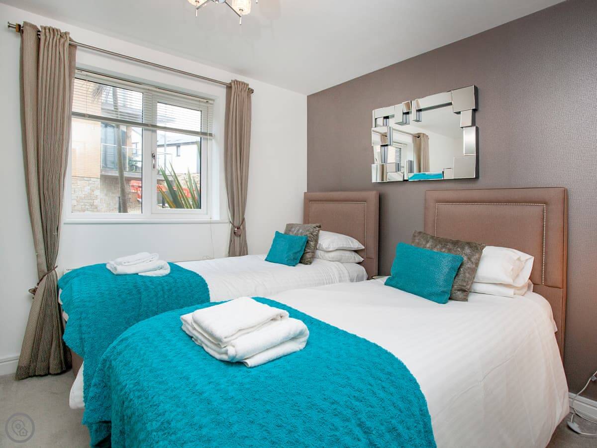 This is Kamal. It's an apartment in Duporth, Cornwall. It sleeps four, in two bedrooms. Both bedrooms have their own bathroom, which is handy.