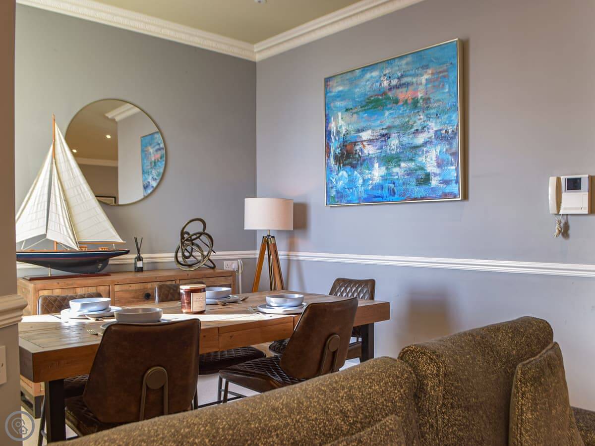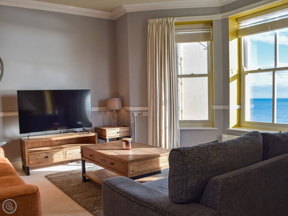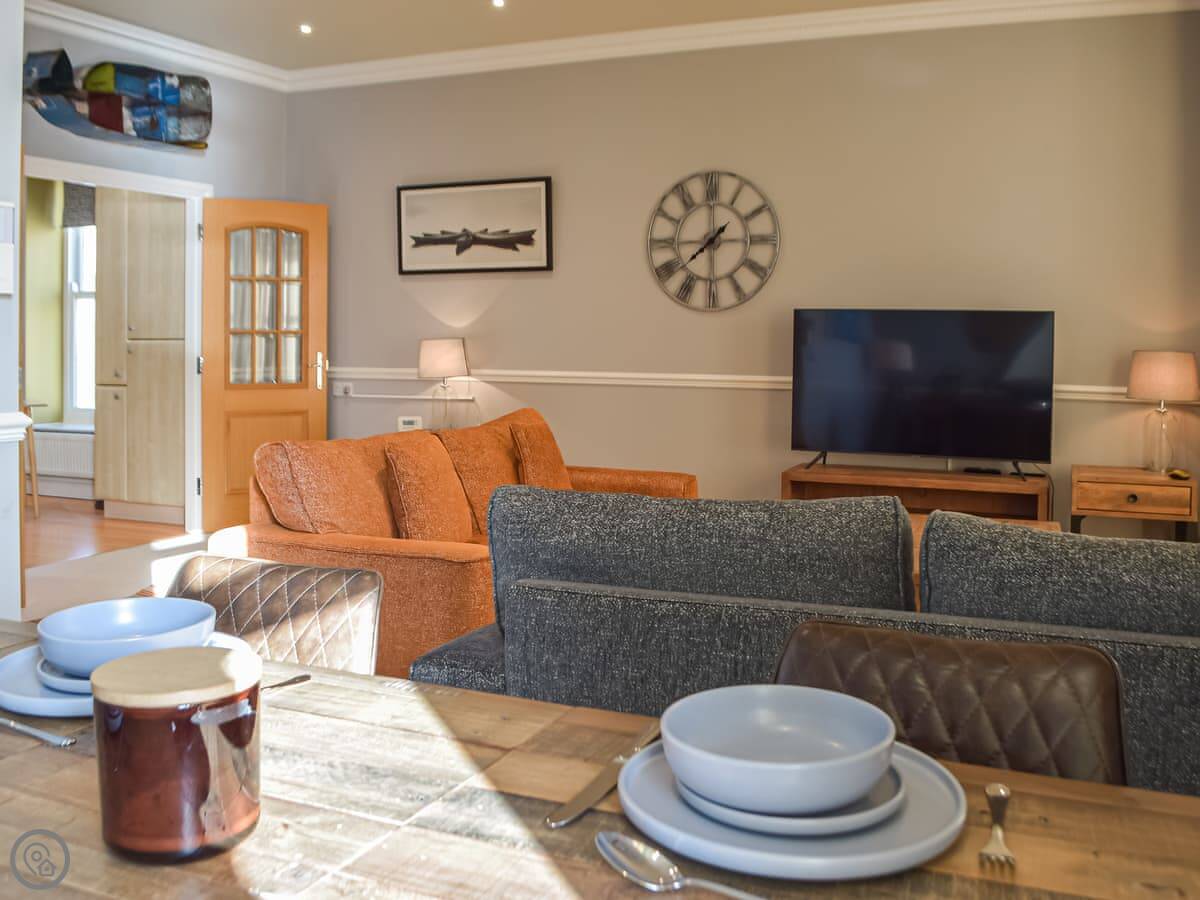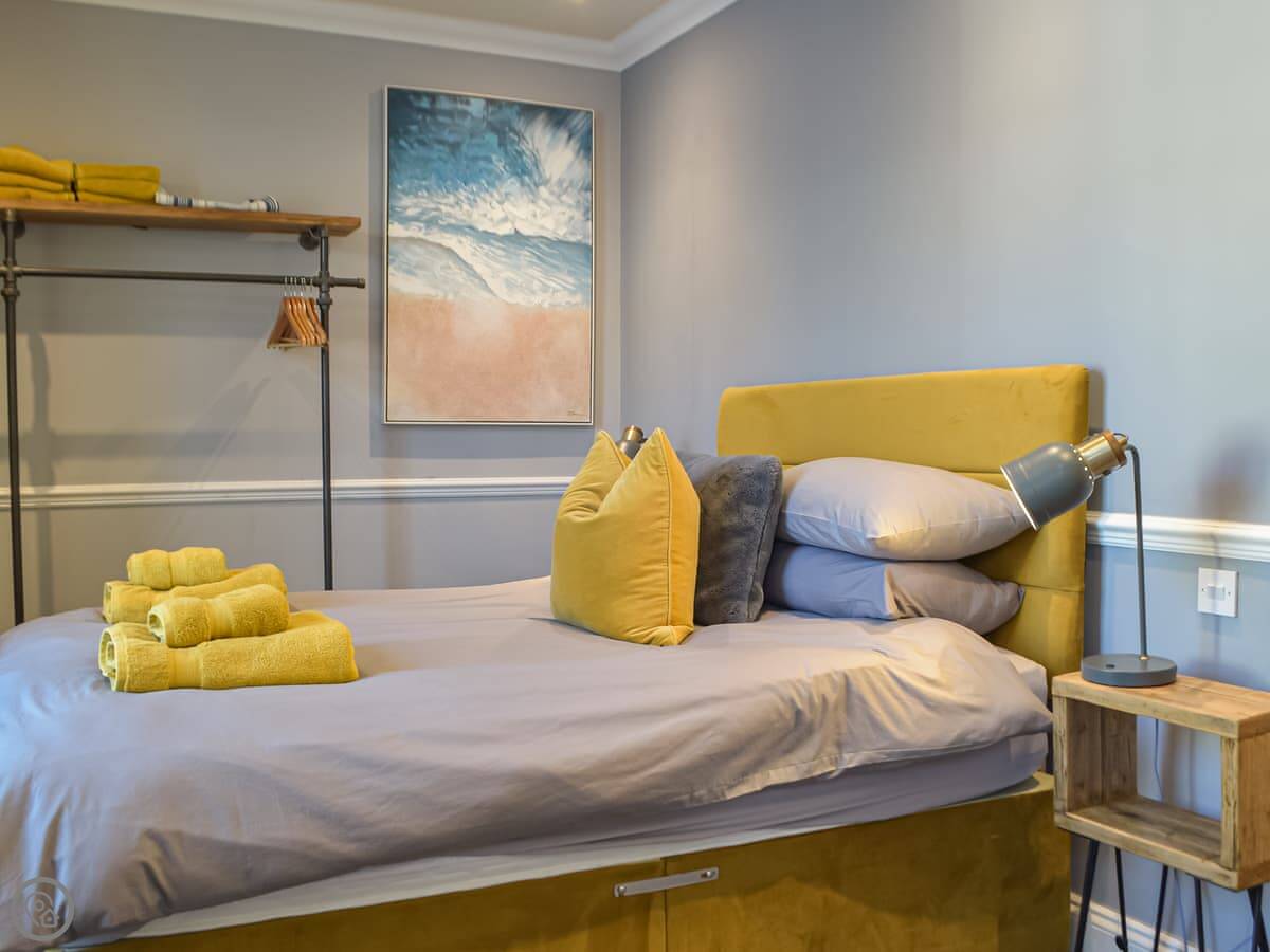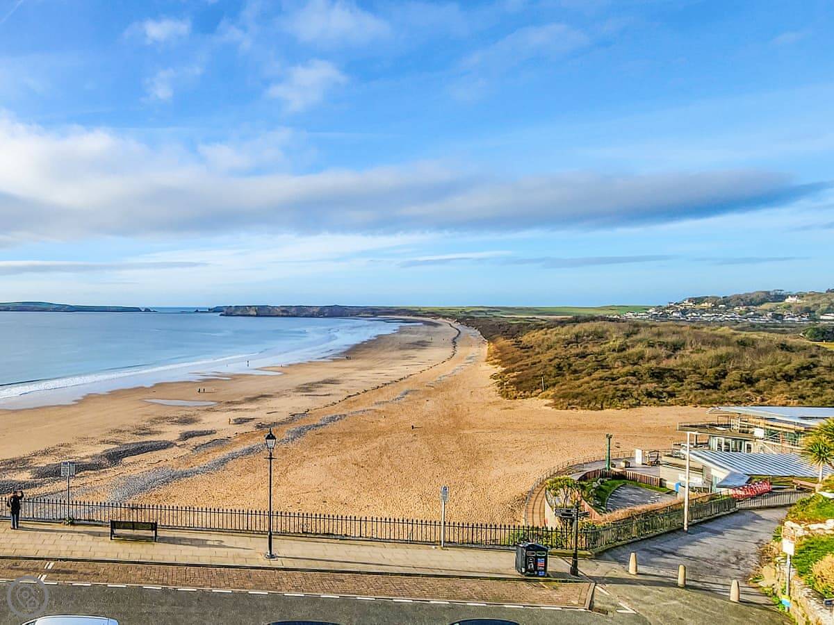 South Beach View is a second-floor apartment in Tenby. It sleeps six people across three bedrooms. There are two bathrooms, one of which is an en-suite.