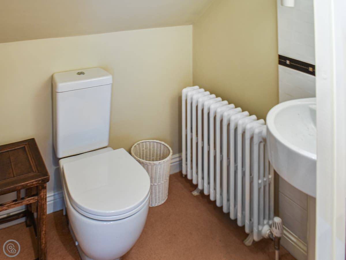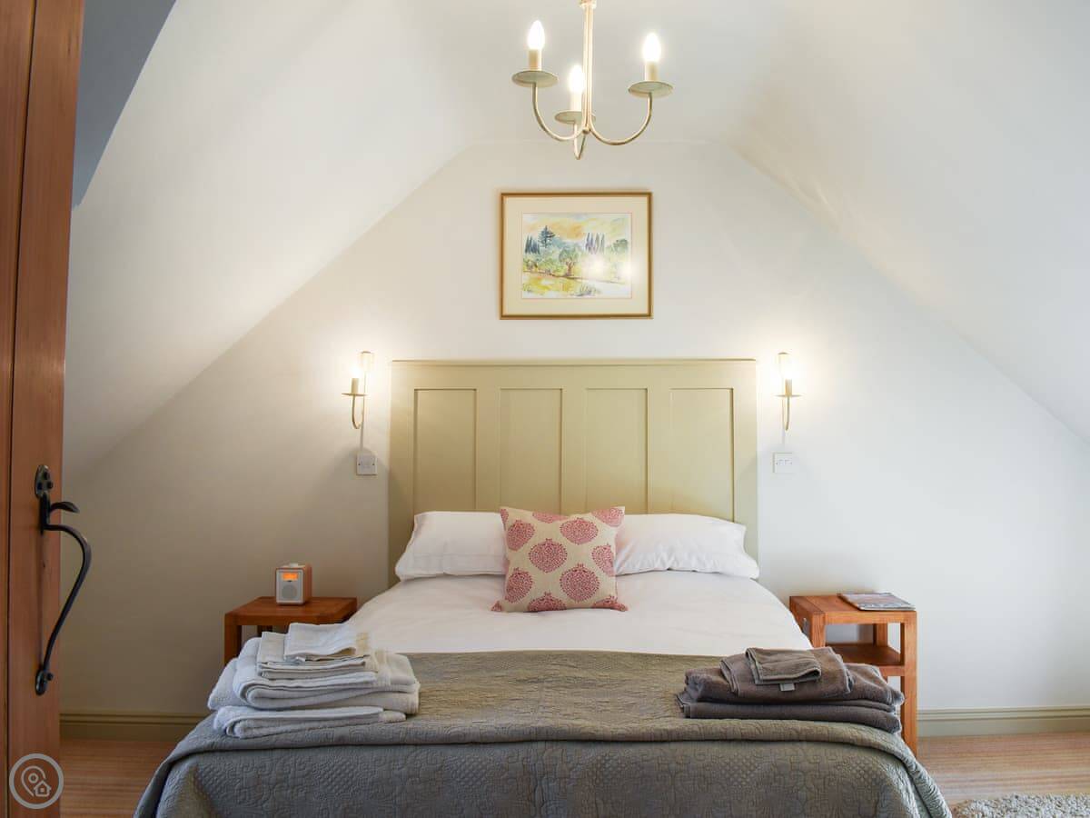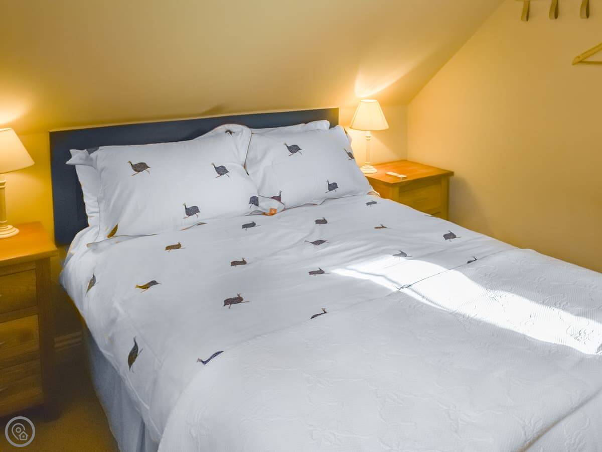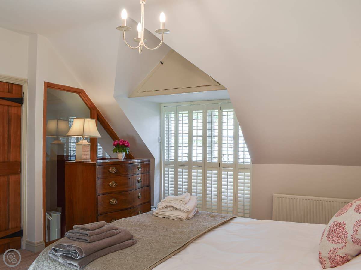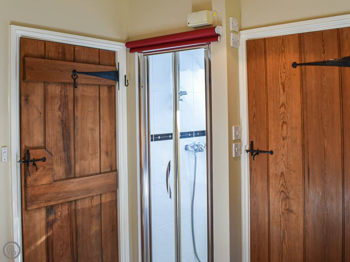 It sleeps four. Two bedrooms: a king and a double. Both have their own ensuite shower room, which is handy. The rating is 4 Star, so it's got everything you'd need. There's a wood burner in the living room. The stairs are a typical cottage staircase, just be aware of them.