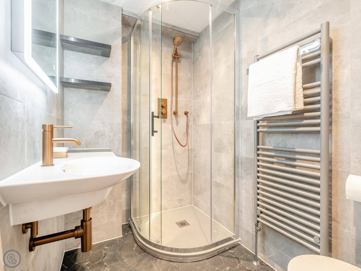 It's got a 5 Star rating. That means it's well equipped and finished to a good standard. It's on three floors. The stairs are standard for a house this age. There's a small step down into the accessible bedroom on the ground floor, just so you know.
