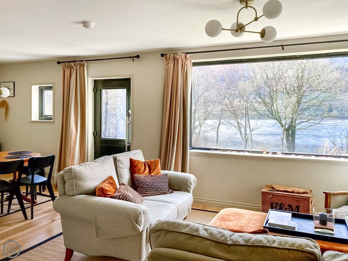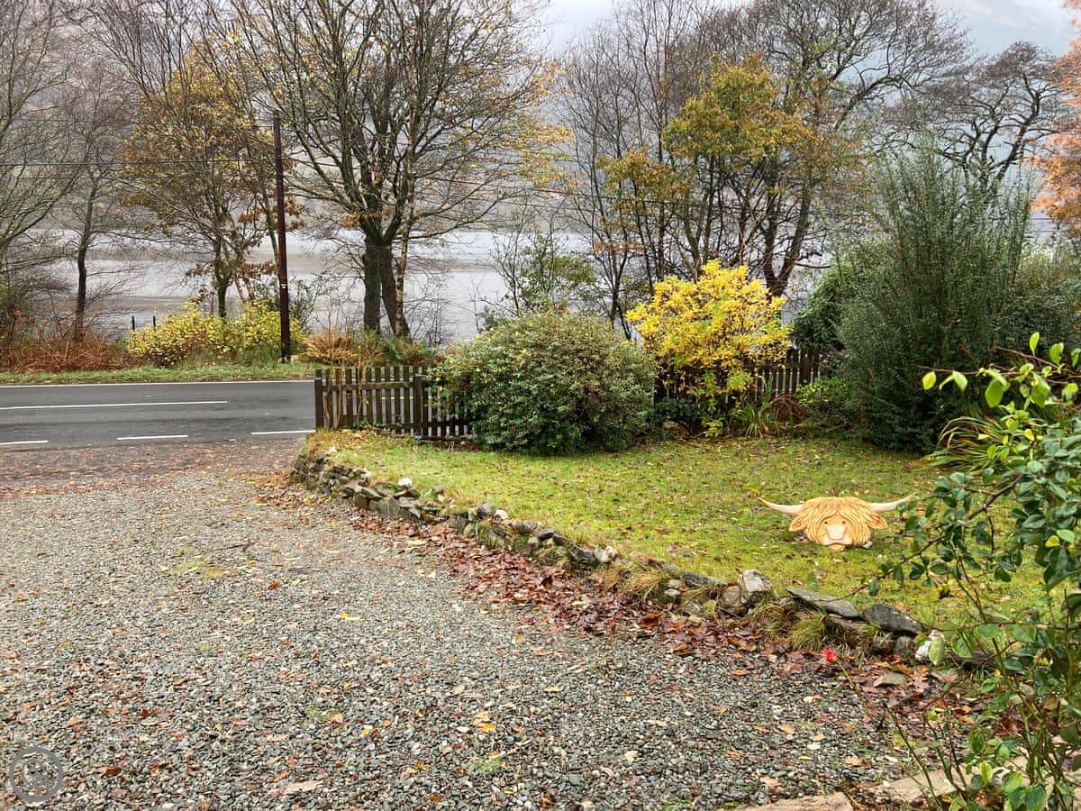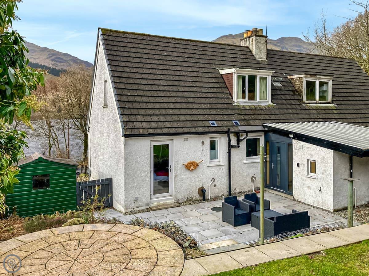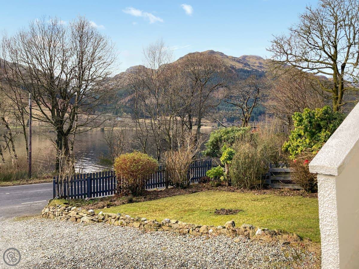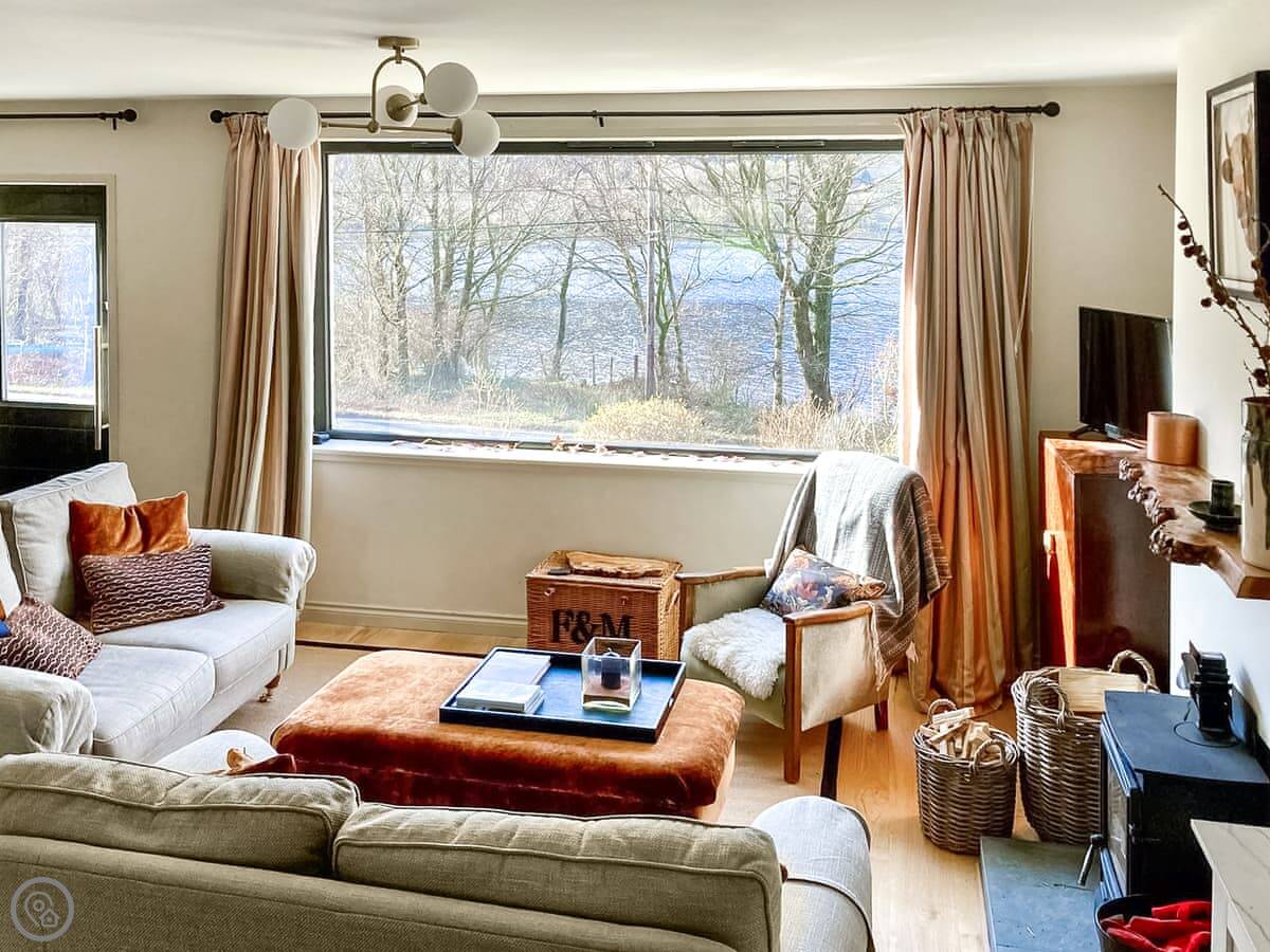 The main thing is the view. You look straight out over Loch Eck from the living area. Big windows. There's a wee patio area out the front with chairs, so you can sit outside with that view.