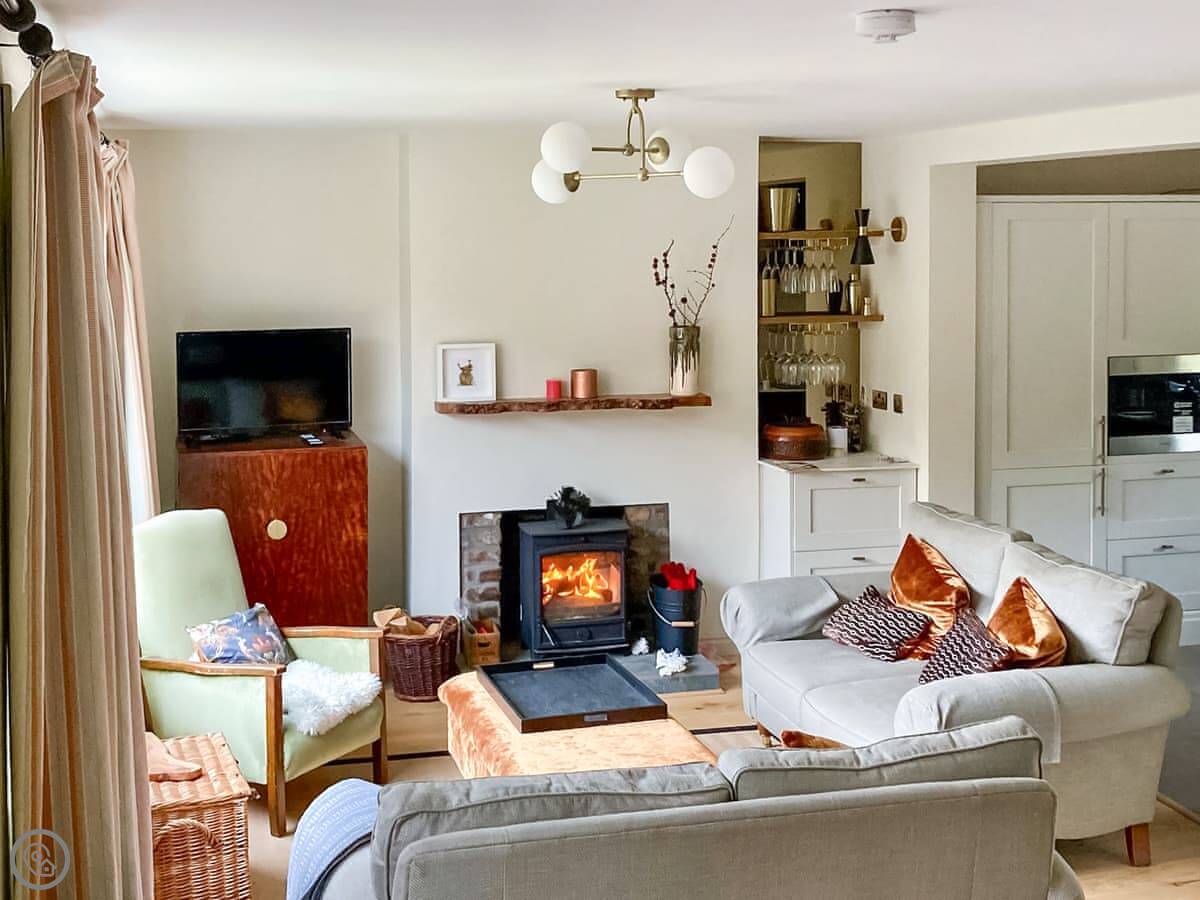 Facilities: it’s got a woodburning stove, WiFi, TV, dishwasher, washing machine. Bedding and towels are included. There's a cot if you need it. Parking on site. There’s also an electric vehicle charger. No pets, sorry.