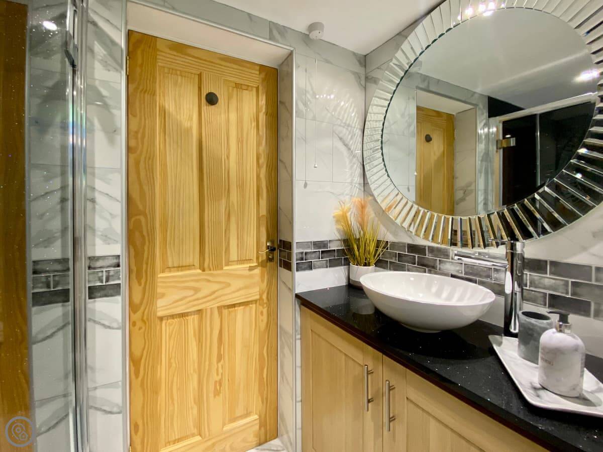 It's all on ground level. You have your own front door into one main room with the kitchen, sofa and bed. There's a separate shower room. It's got a 4 Star rating. It's comfortable and everything works.