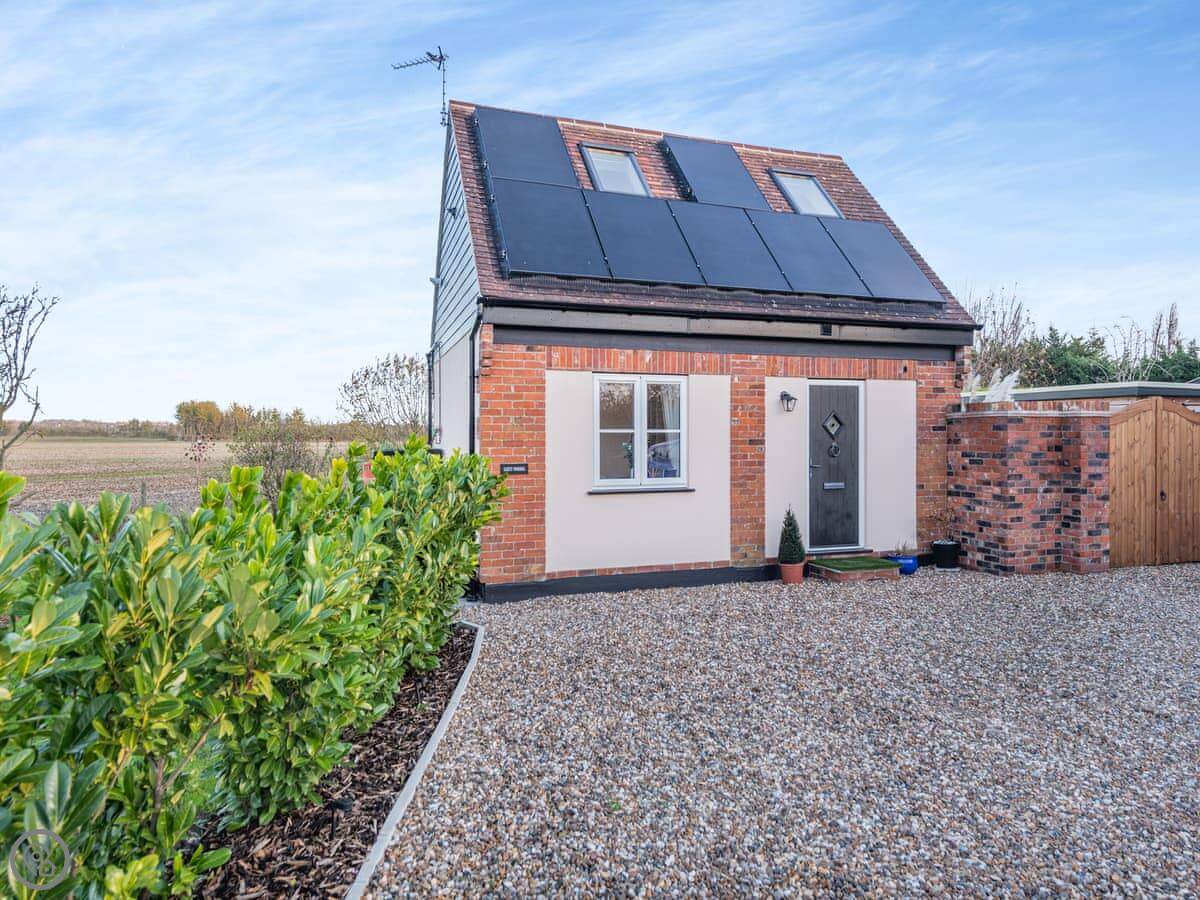 Rose Cottage is in Peldon, Essex. It's a brick and flint upside-down house. That means the bedrooms are on the ground floor and the main living area is upstairs. It's done that way so you get the long views from the sitting room.