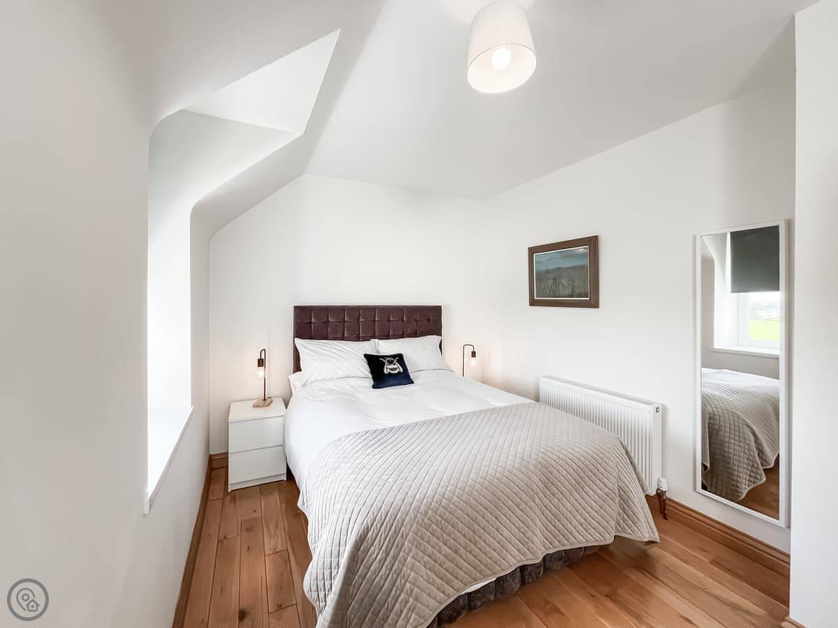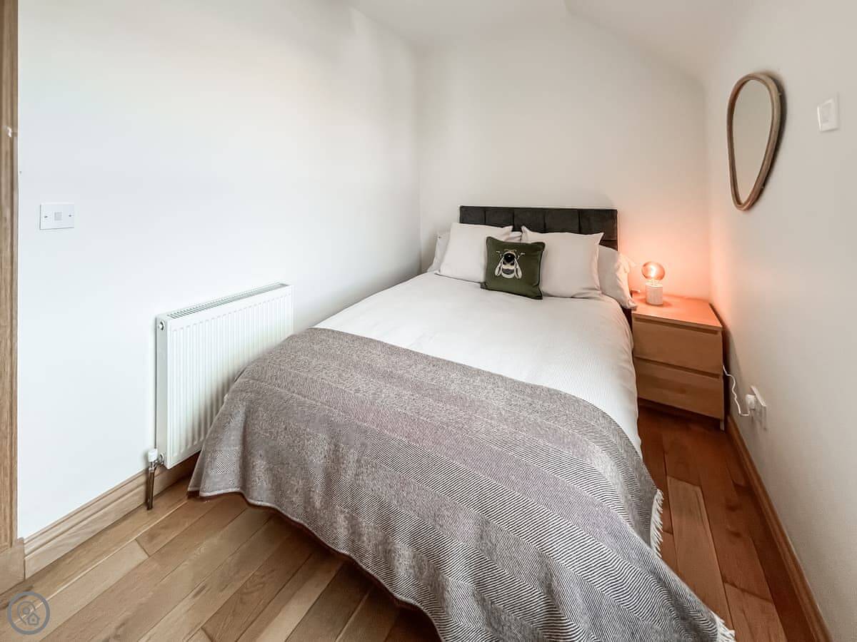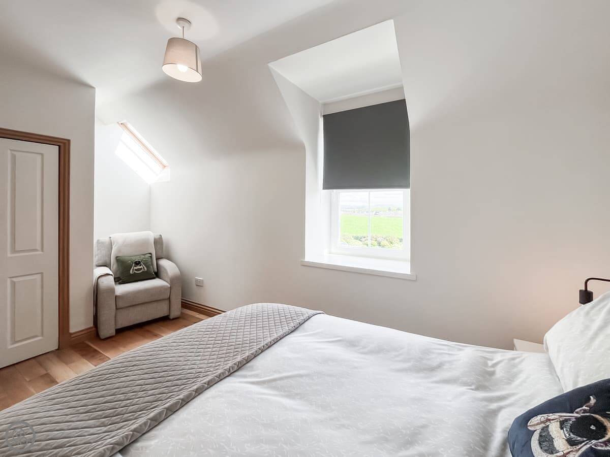 It sleeps five. Three bedrooms upstairs, two bathrooms (one shower room downstairs, one family bathroom up). It's a 4 Star place, so it's comfortable and well-equipped. The stairs are the original farm building stairs, so they're a bit steep and turn a corner.