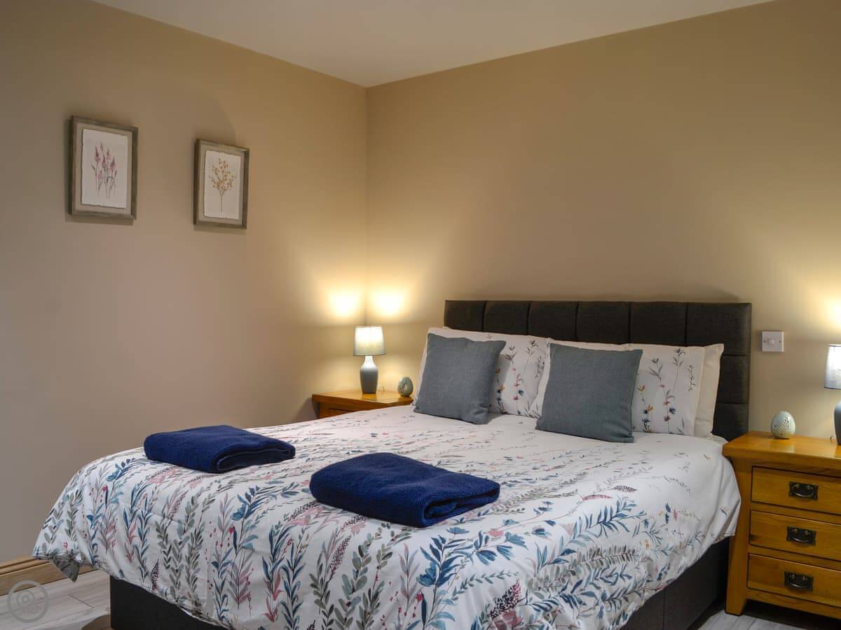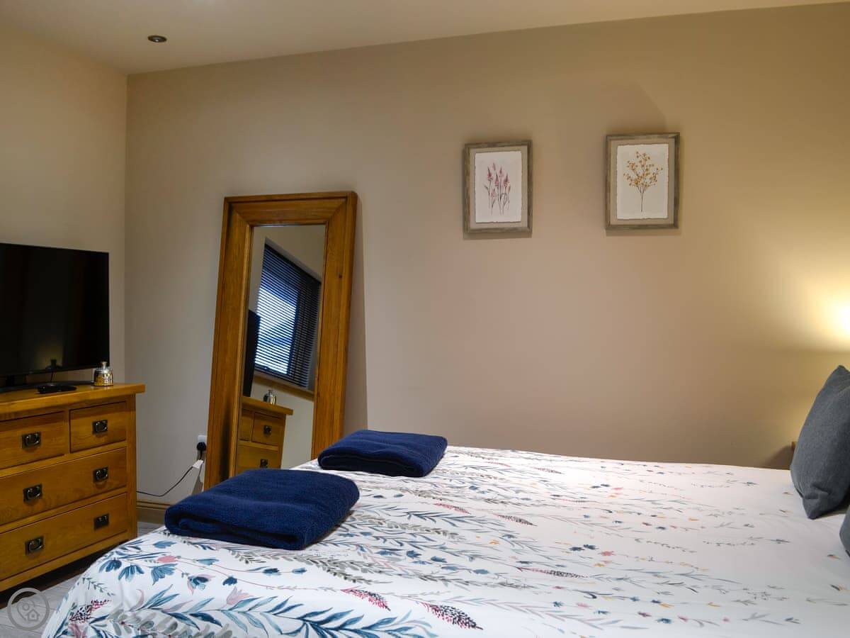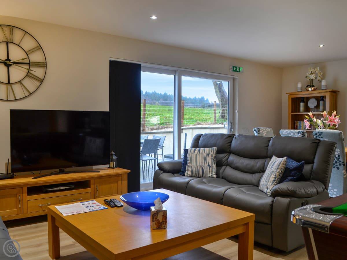 It's a detached lodge, all on the ground floor. It's new-build, so it's modern and spacious inside. Sleeps six in three bedrooms. There are two bathrooms, which is handy with that many people. It's got a 4 Star rating.