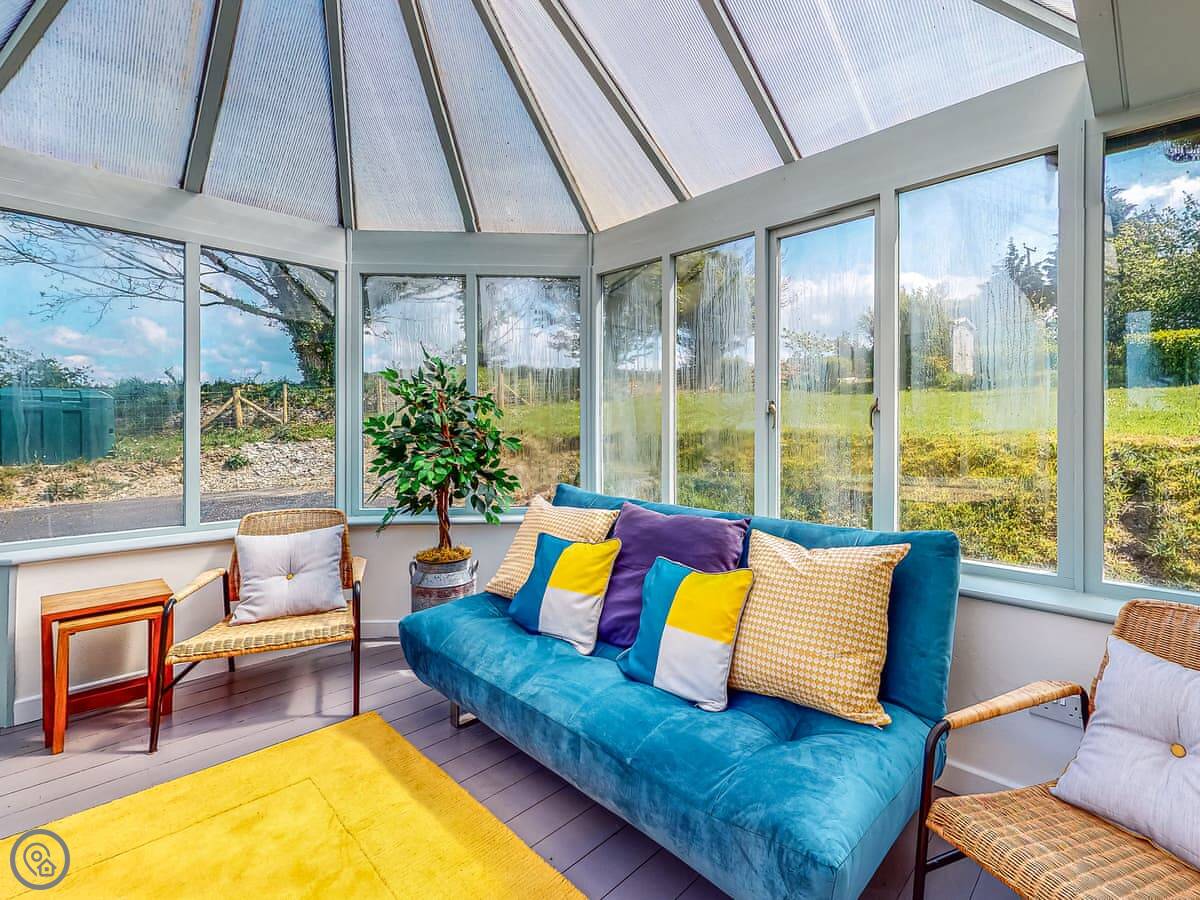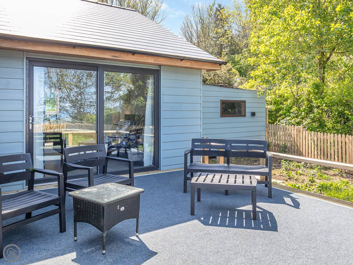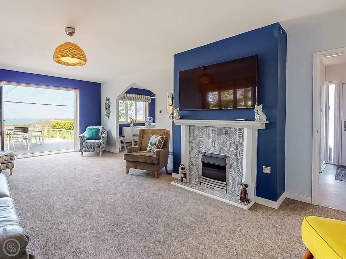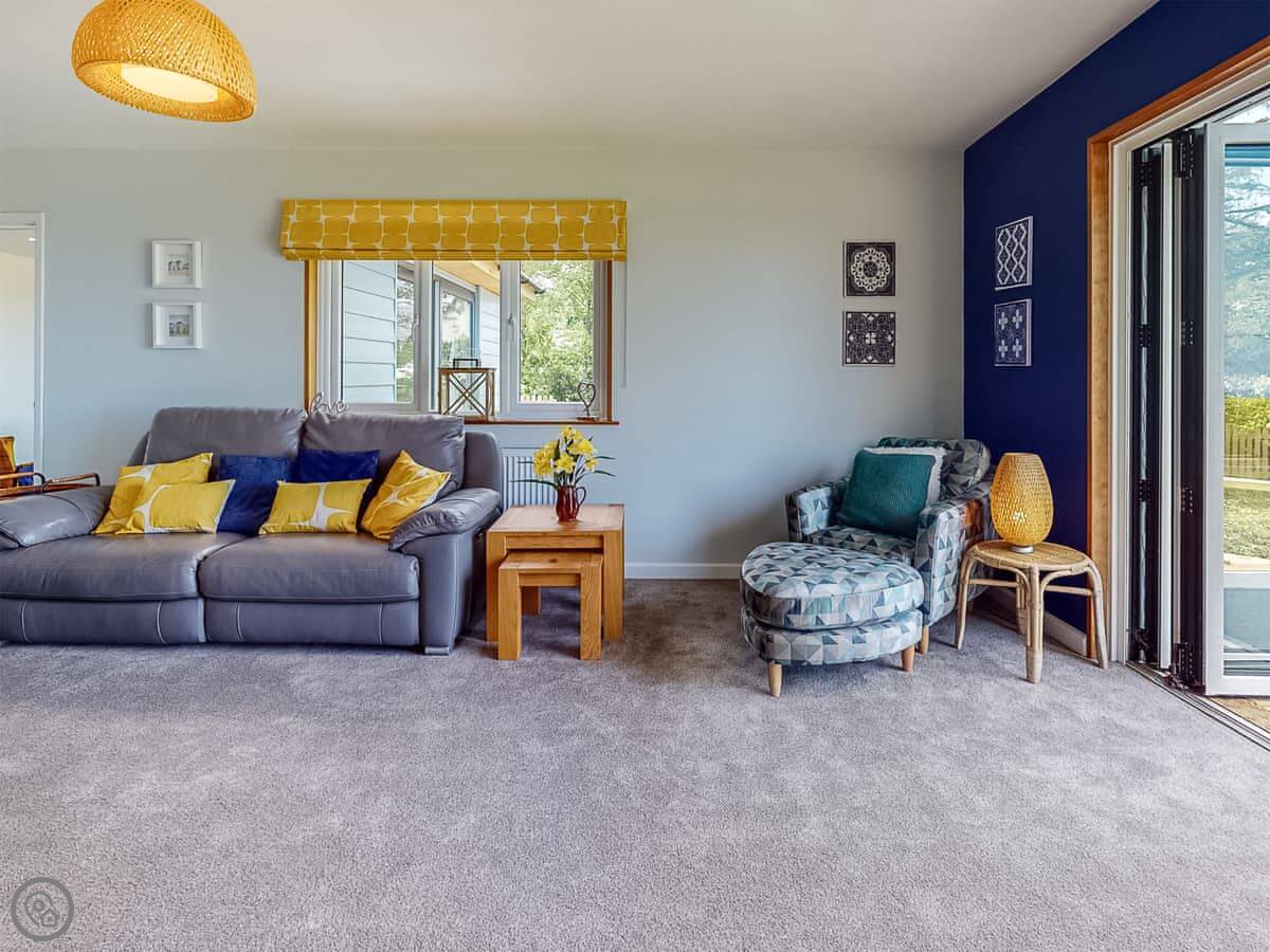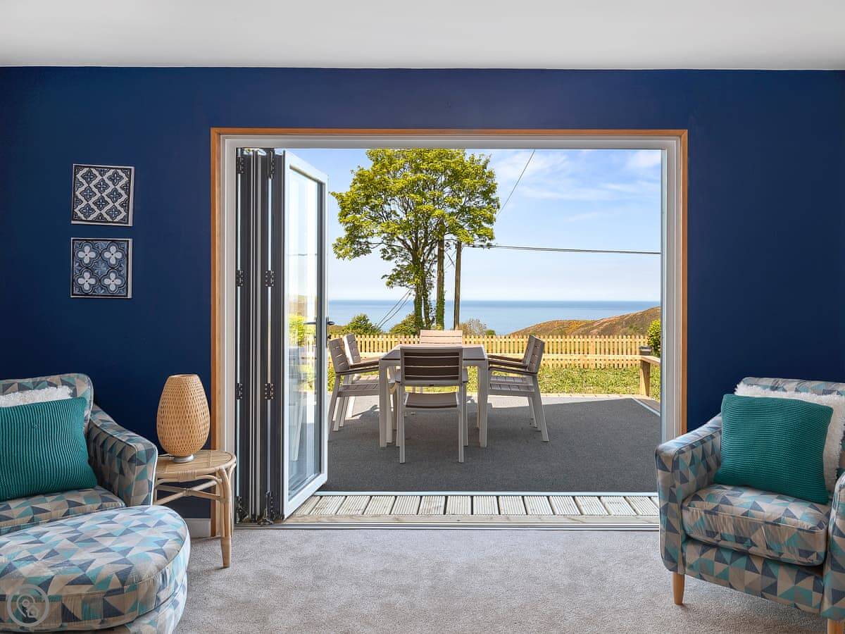 The big thing is the view. You are up on the hillside about a mile from the village. The main living room has these big bi-fold doors that open onto a deck. You just look straight out over fields to the sea. It’s very peaceful. There’s another deck off the main bedroom.