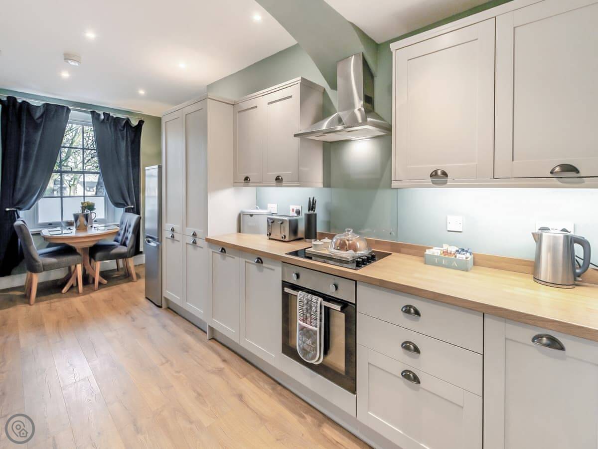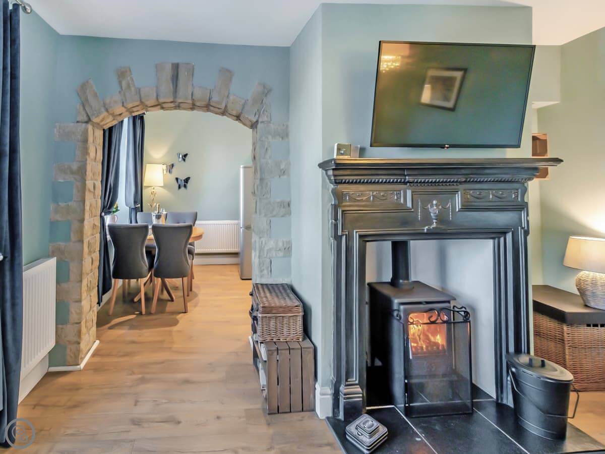 The rating is 4 Star. That means it’s a bit smarter. It’s clean, well-equipped, and there’s a wood burner in the living room. The kitchen is modern and has a dishwasher.